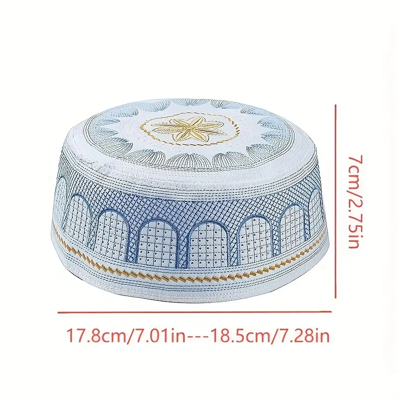 Muslim Men's White Prayer Hat - Round Top Islamic Caps for Elderly, 4 Seasons Traditional Hui Ethnic Hat