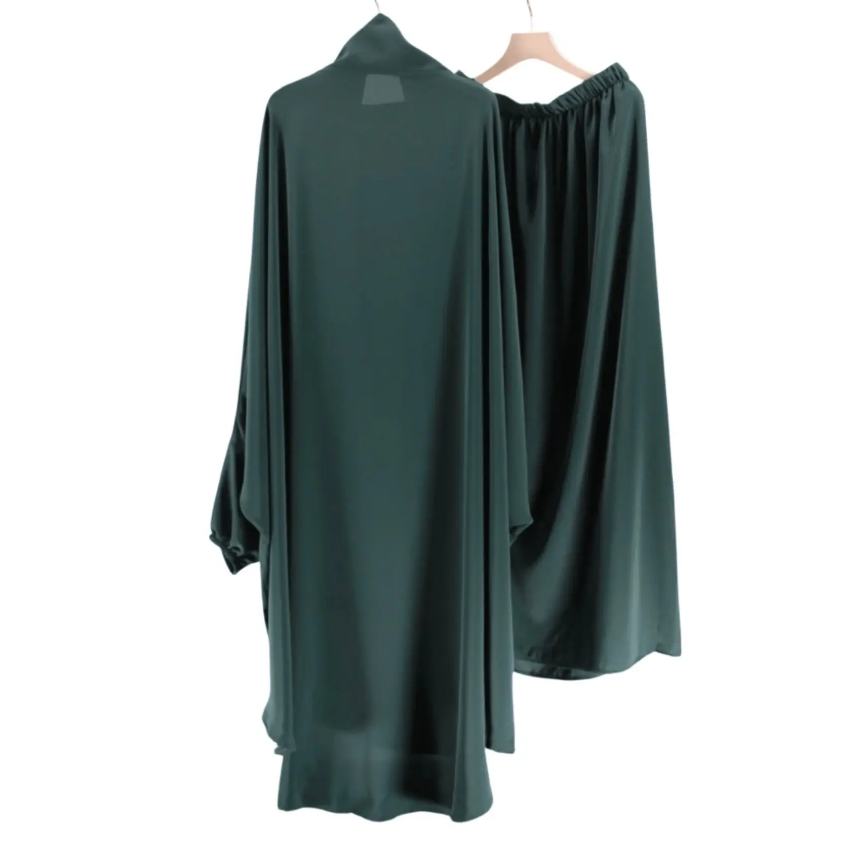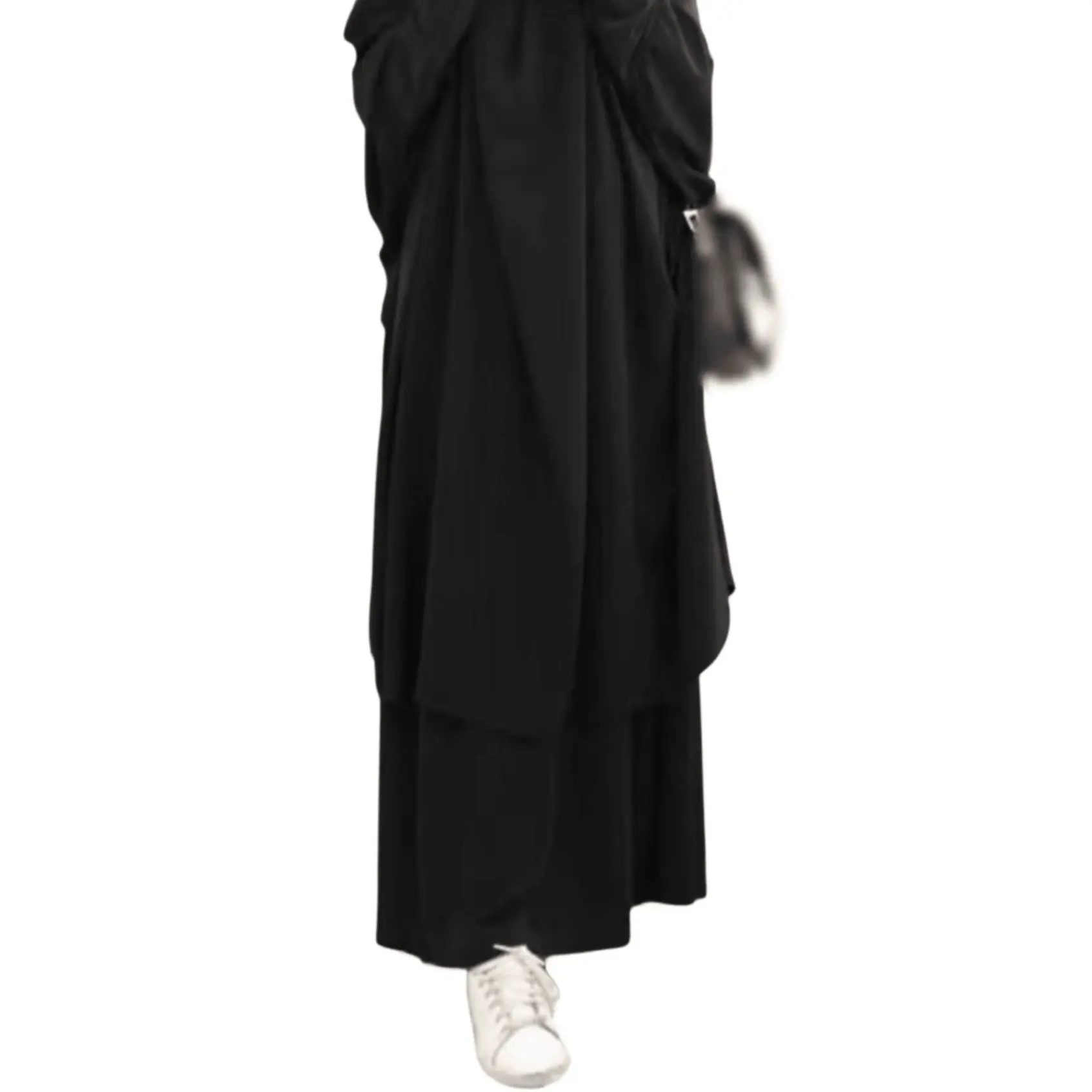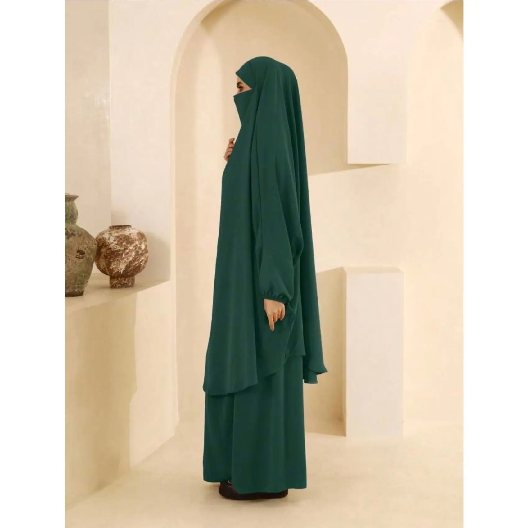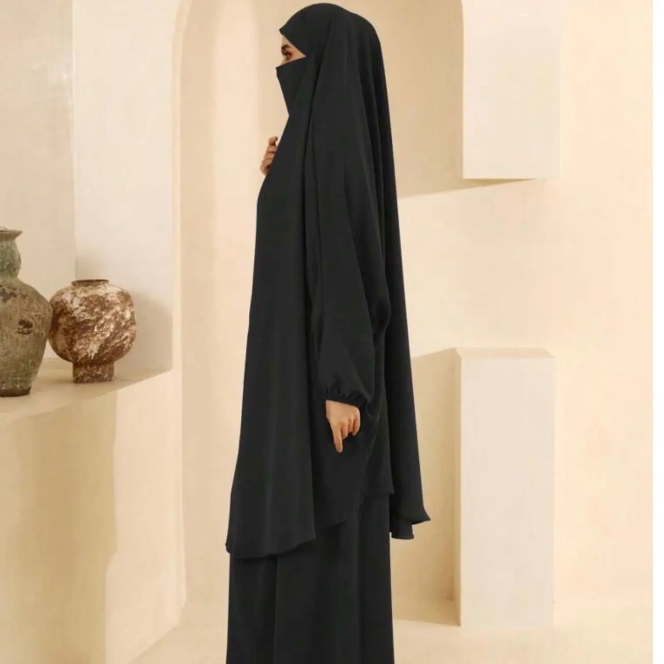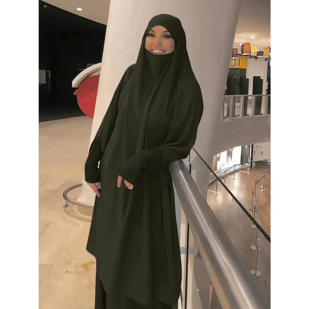 Elegant 2pcs Muslim women’s jilbab Abaya set soft, Breathable polyester, solid color long sleeve perfect for outings comfortable loose fit for all body type