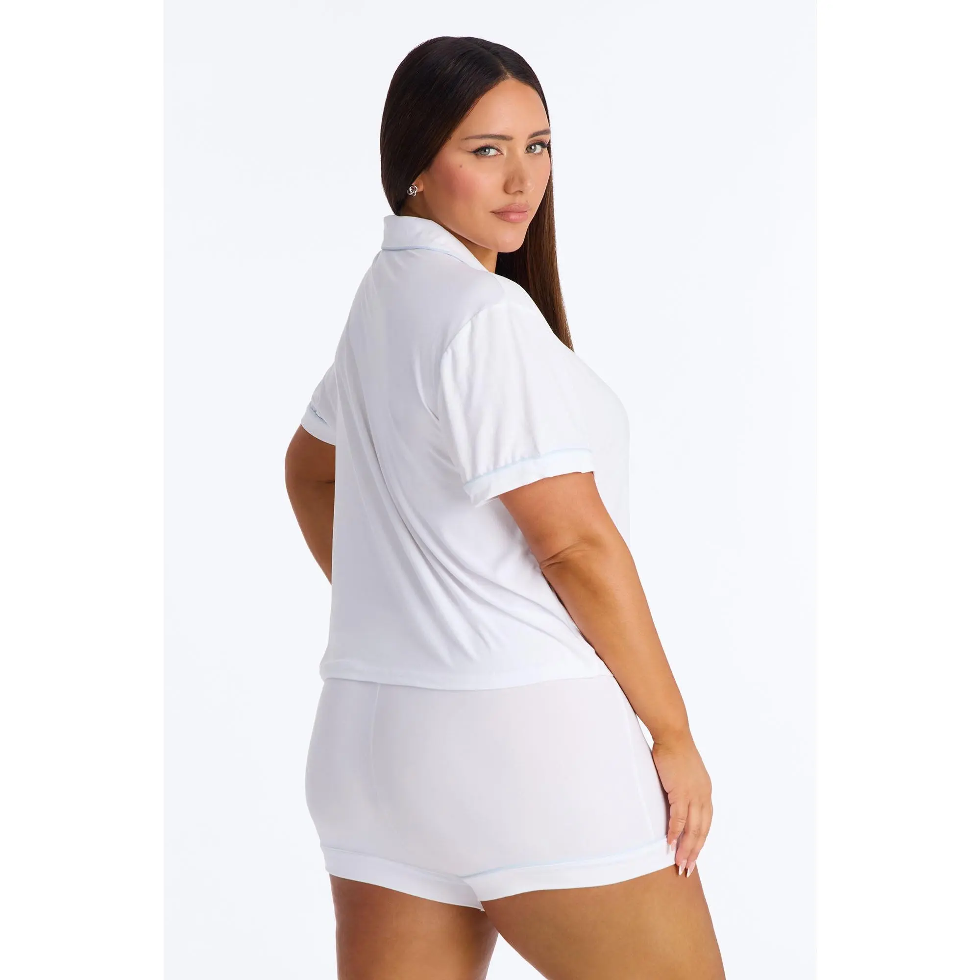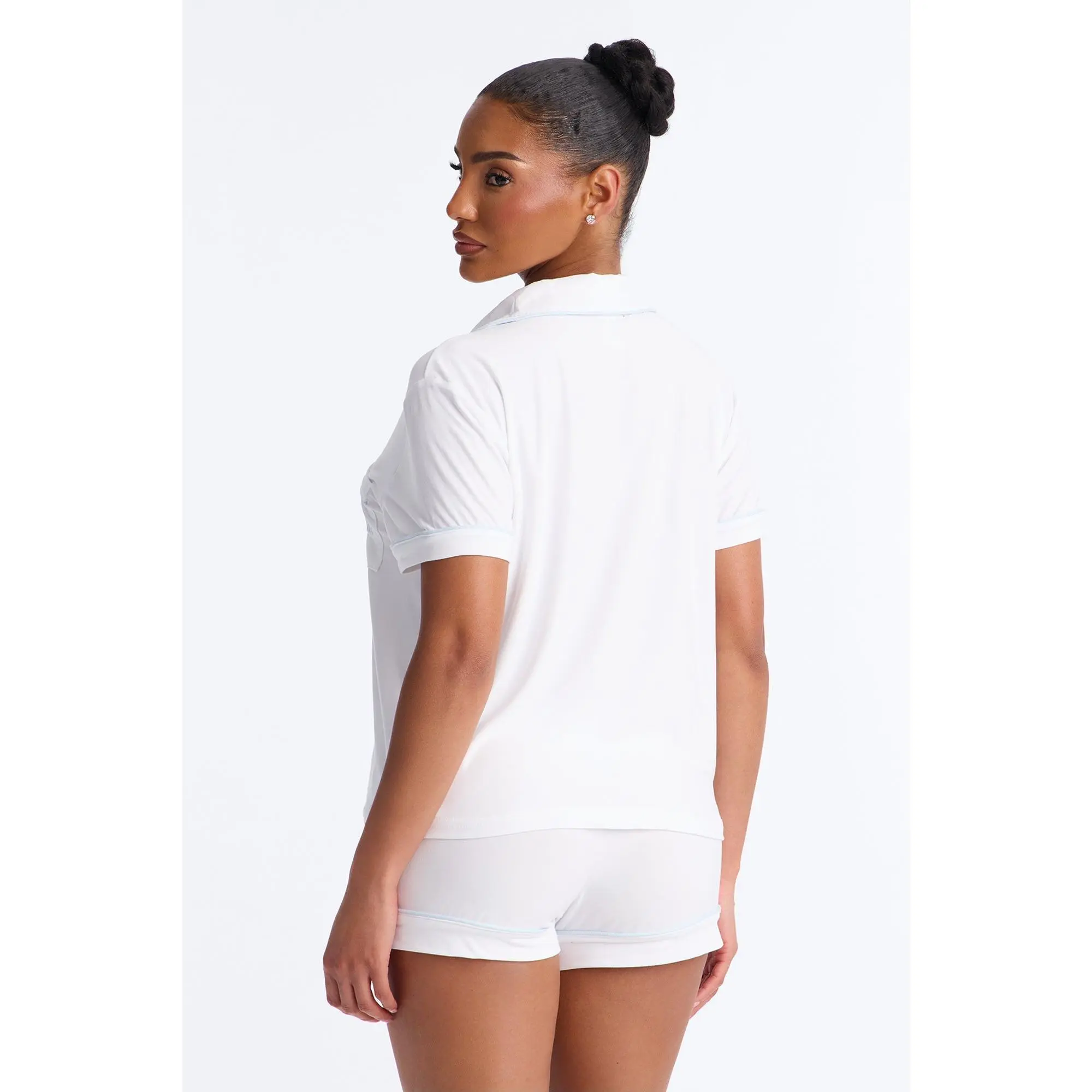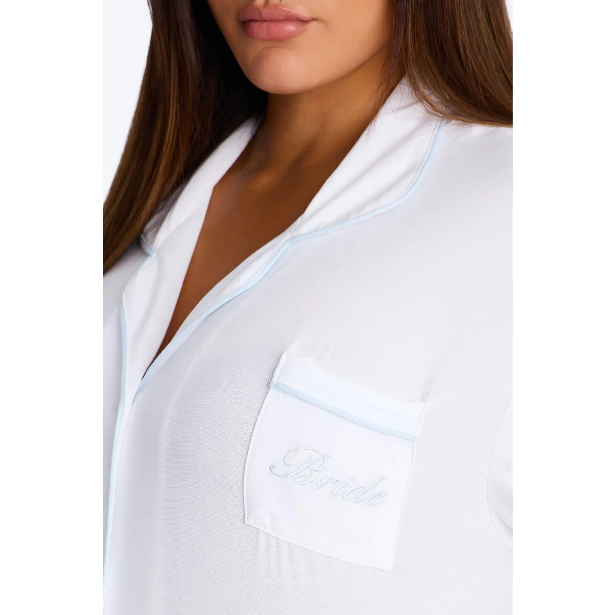 5. Bride Notch Collar PJ Short Set - White/Blue