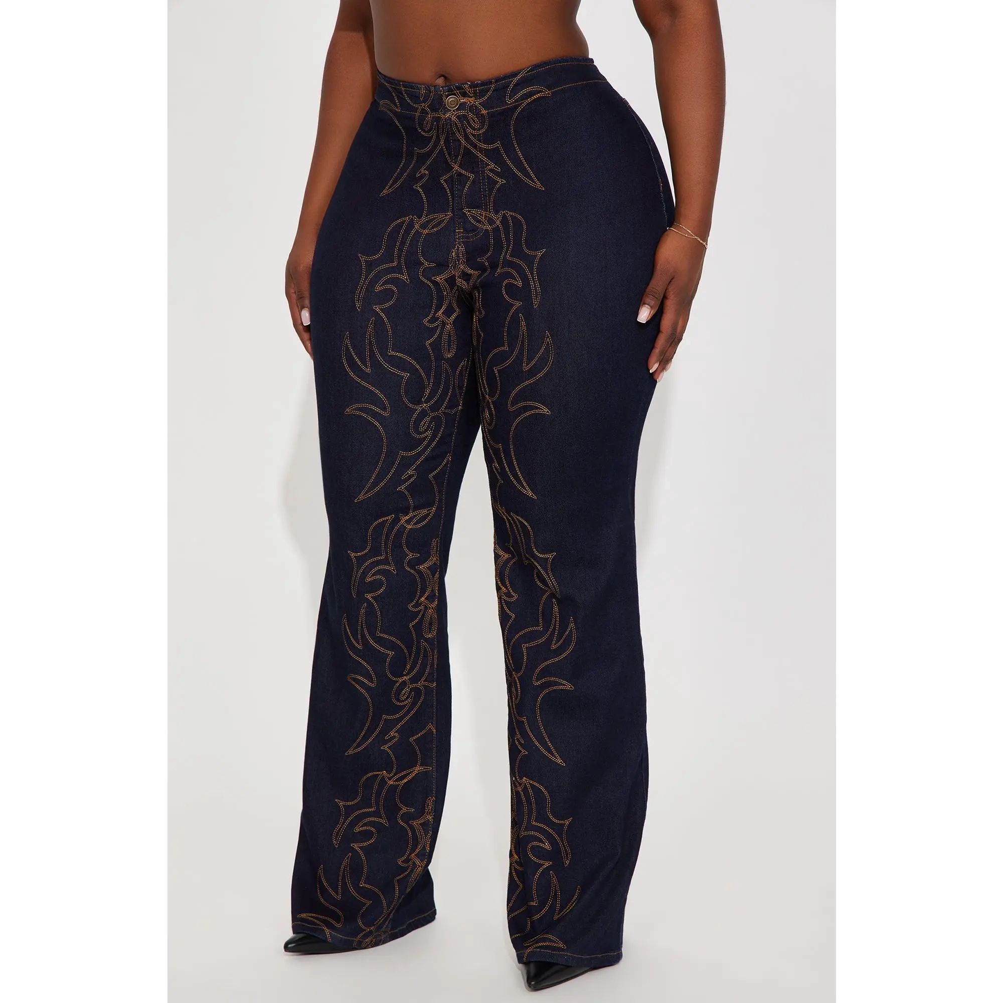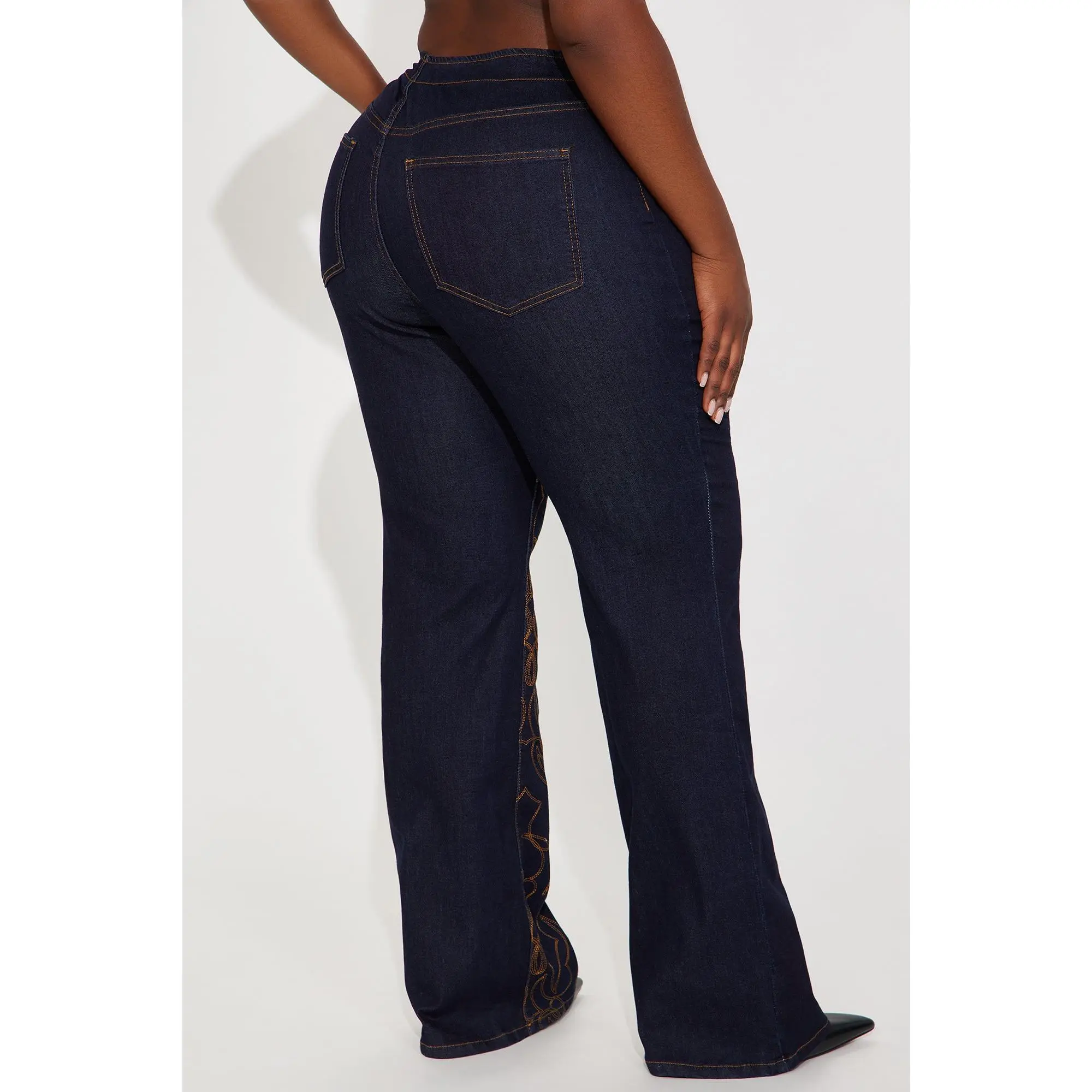 Take The Reigns Embroidered Stretch Wide Leg Jeans - Dark Wash