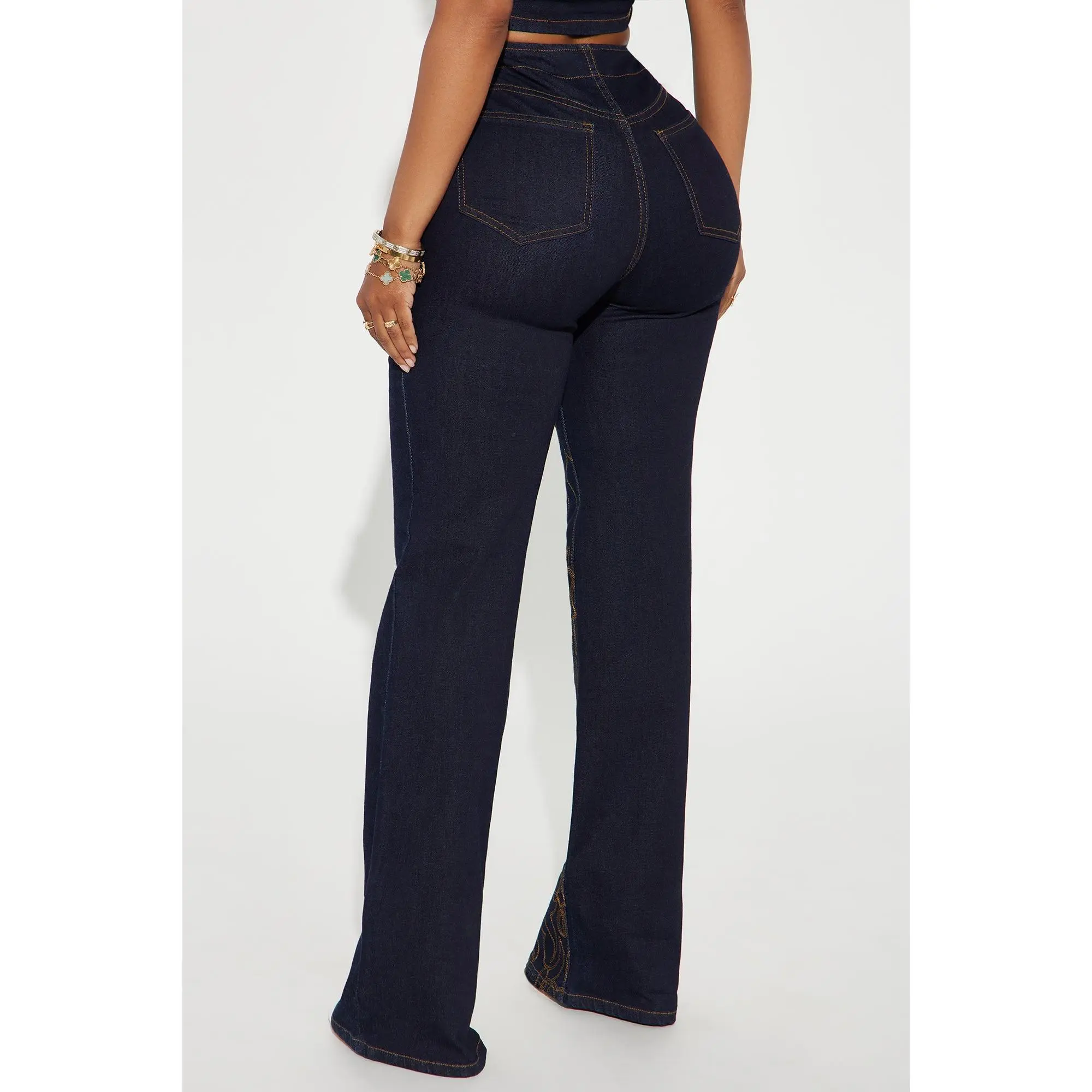 5. Take The Reigns Embroidered Stretch Wide Leg Jeans - Dark Wash