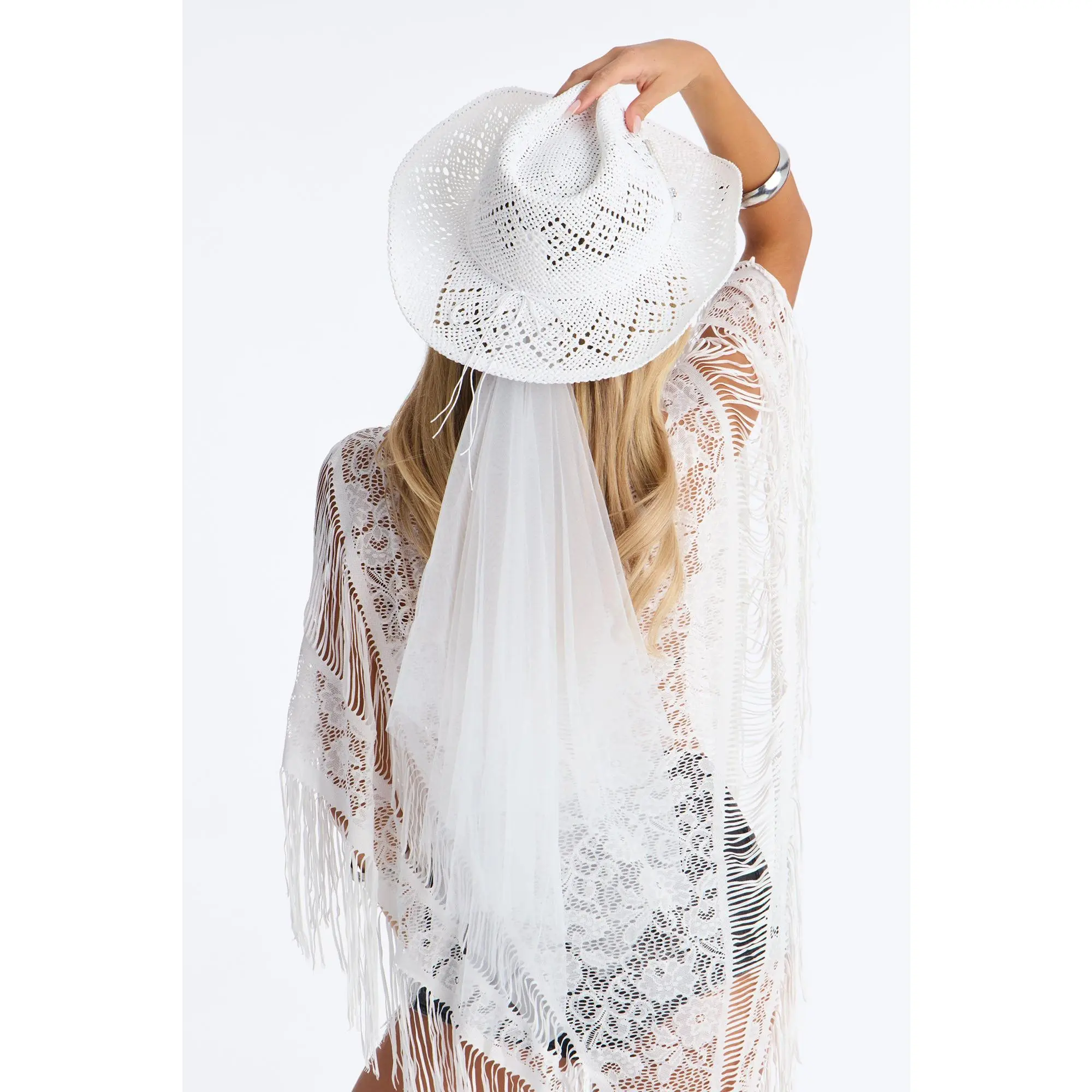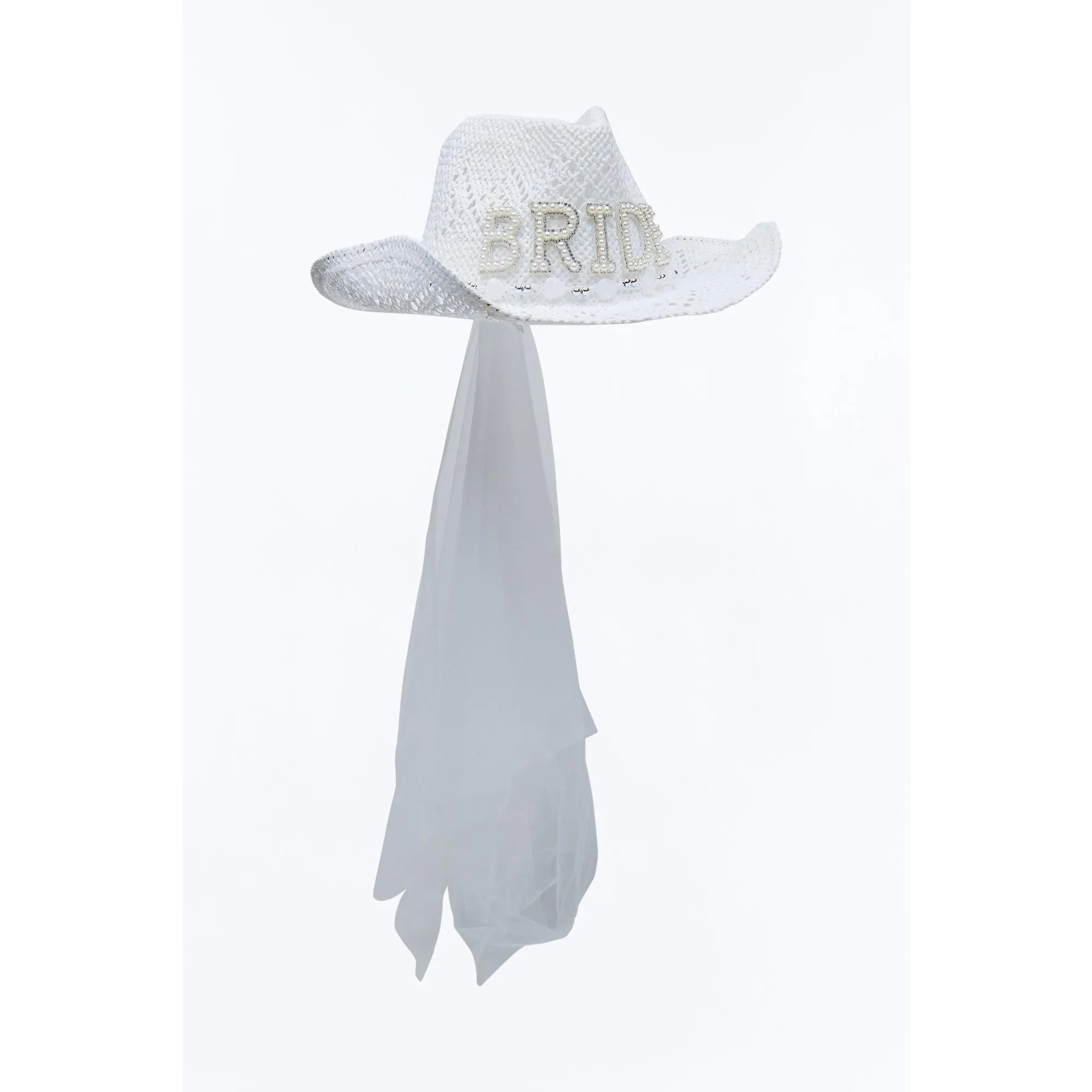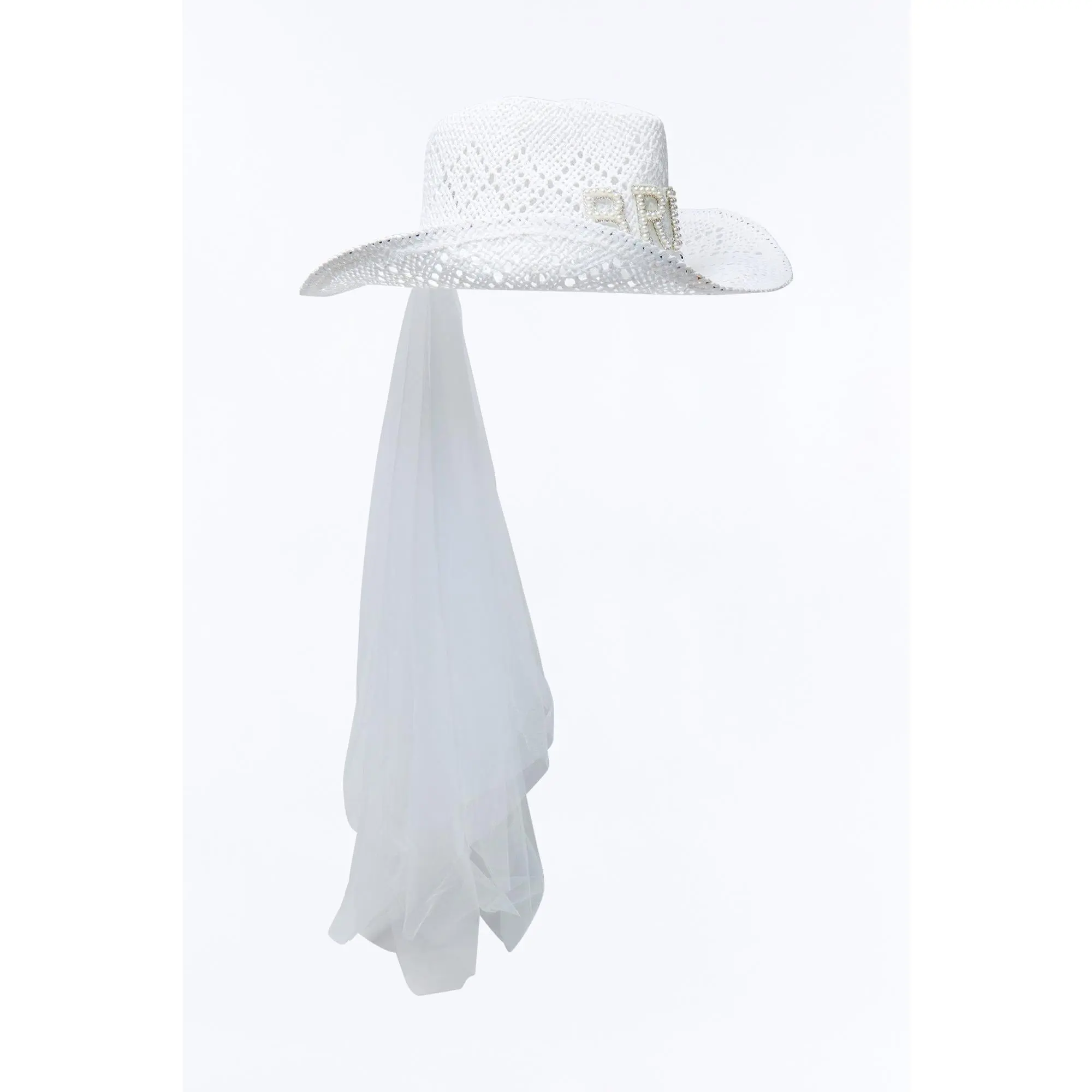 Bride In White Straw Cowboy Hat - White