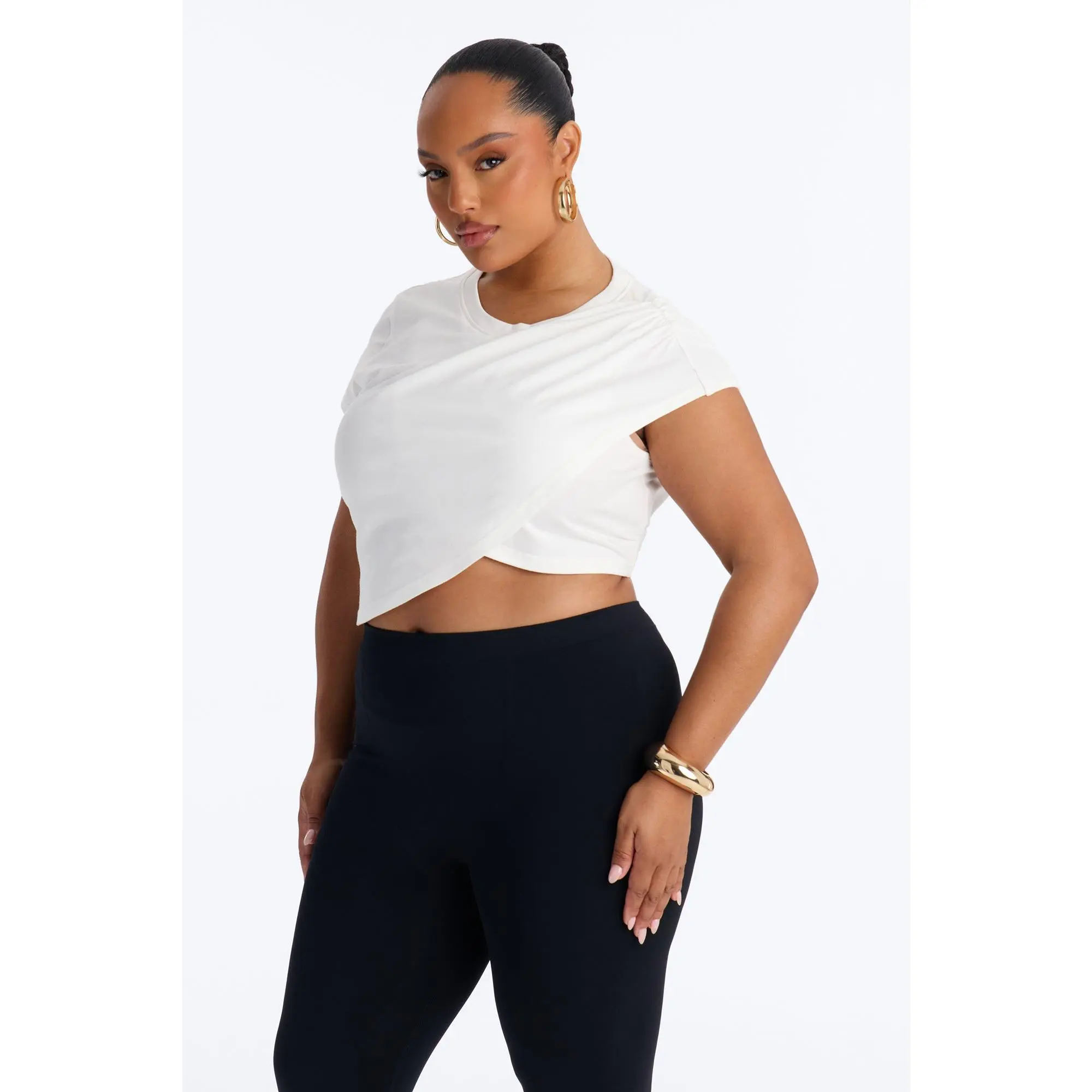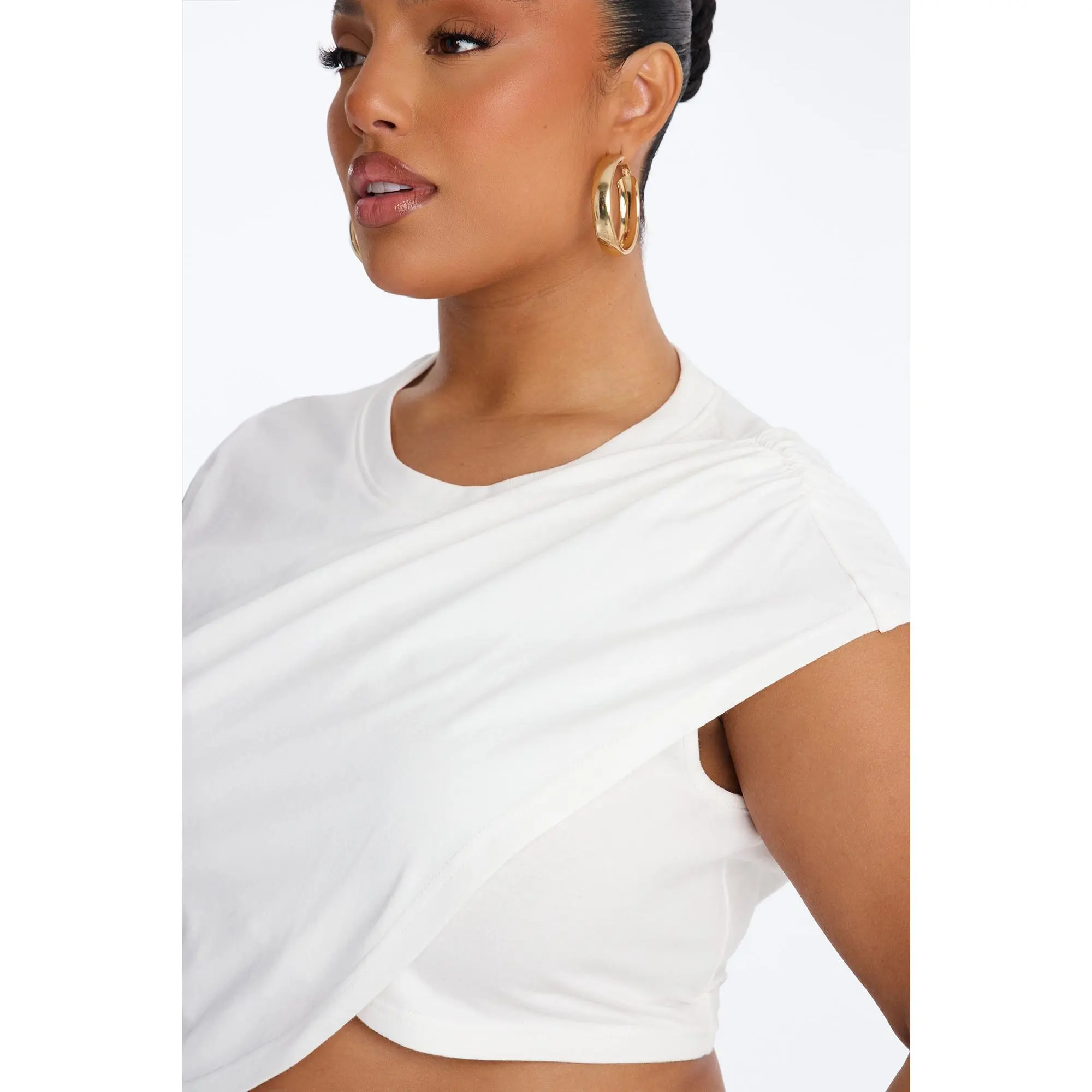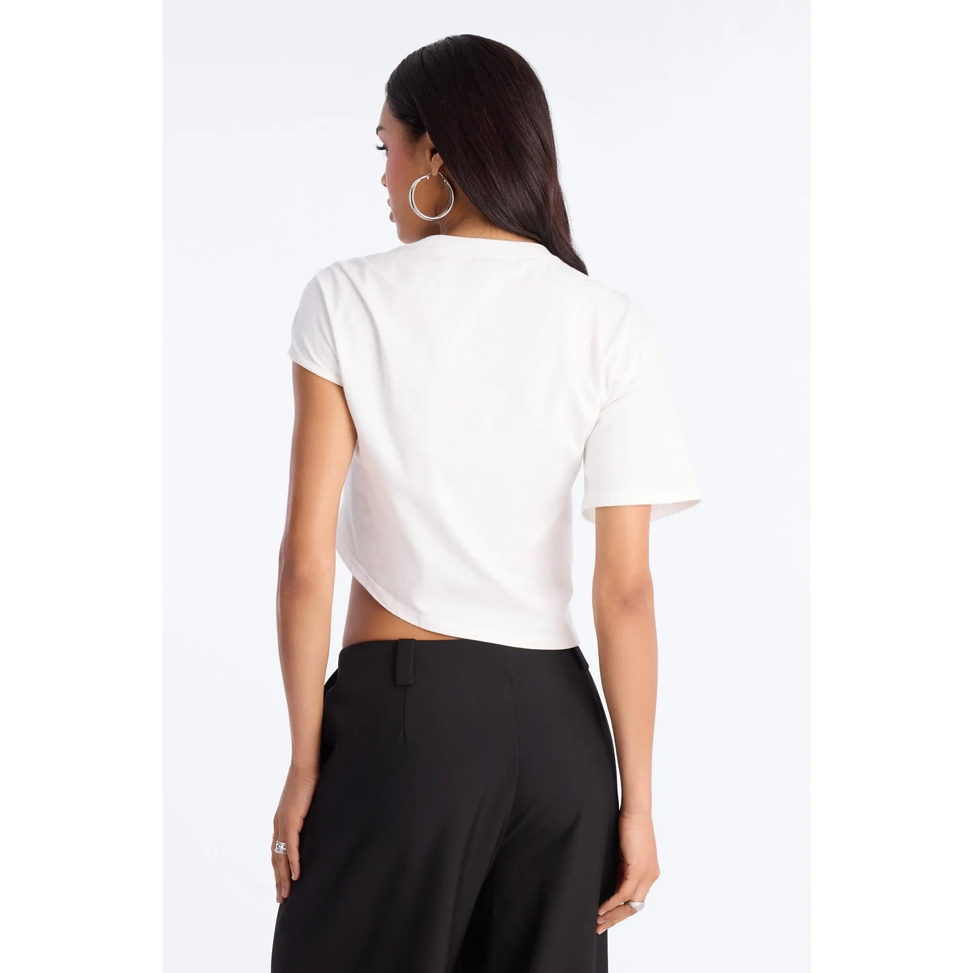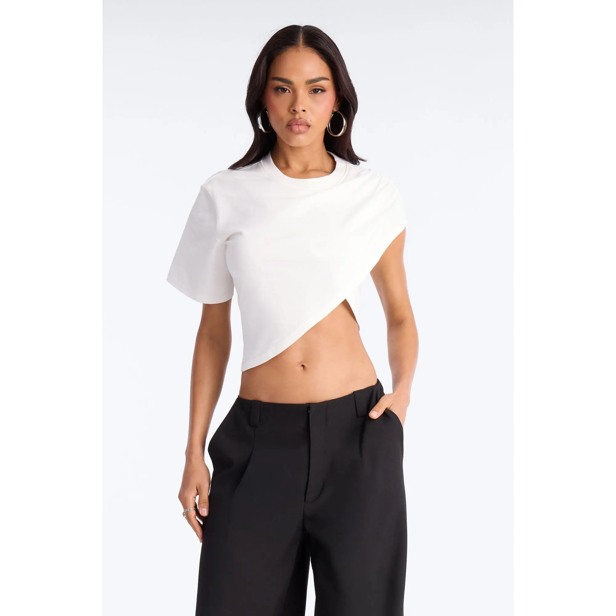 Unbothered Asymmetrical Short Sleeve T-Shirt - White
