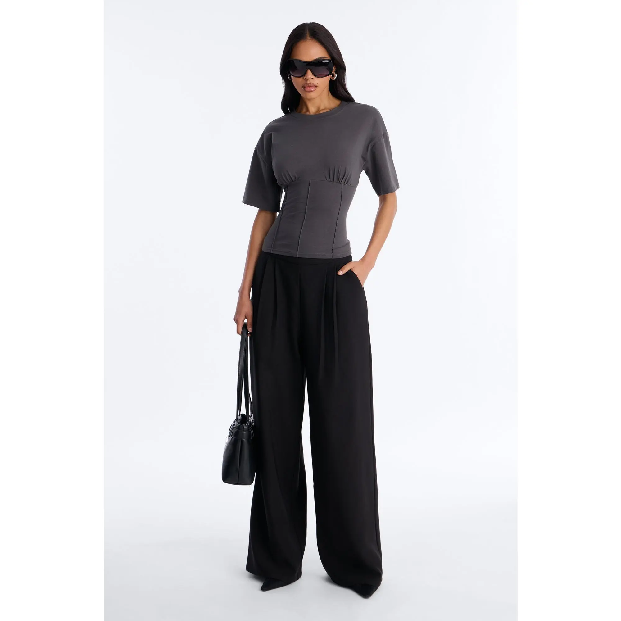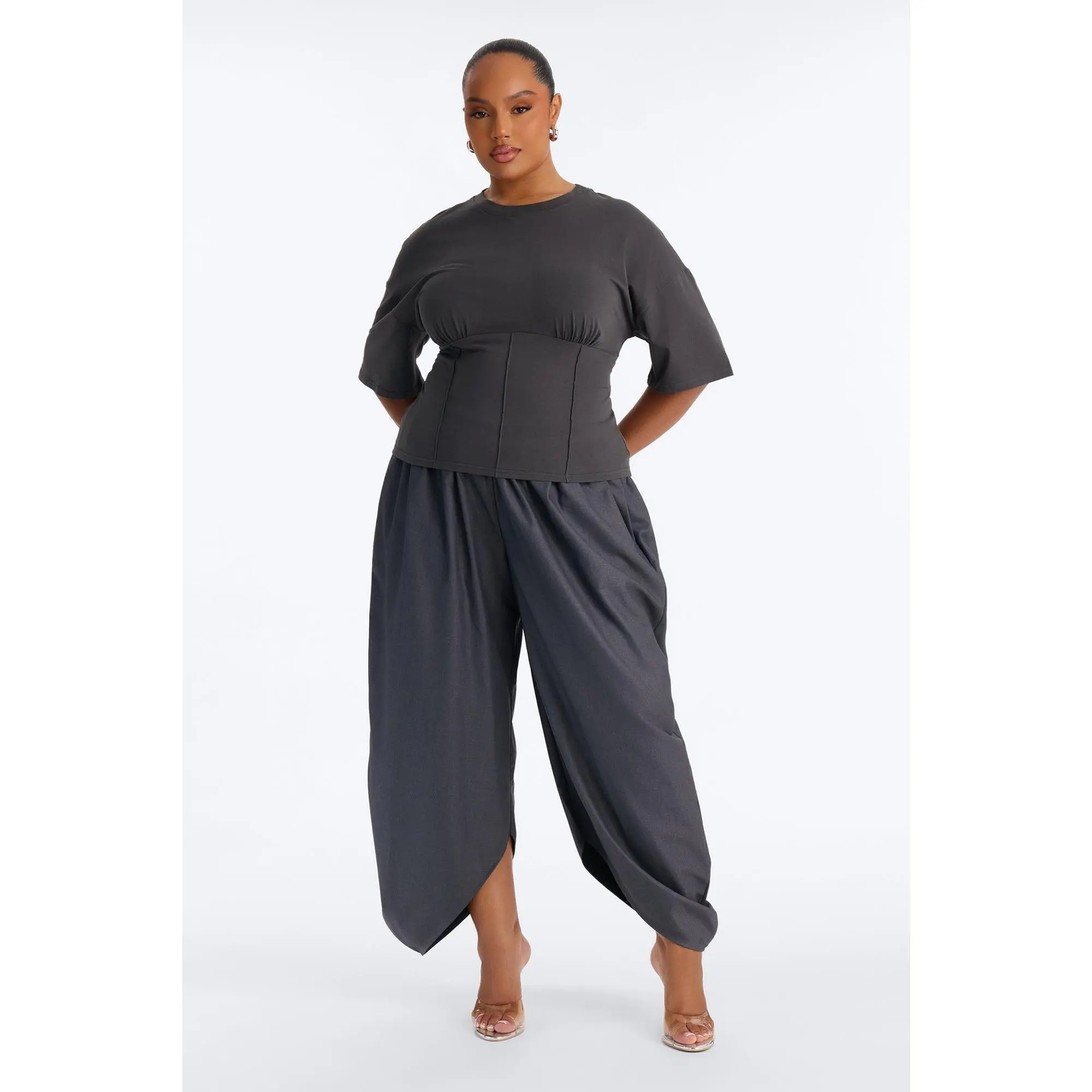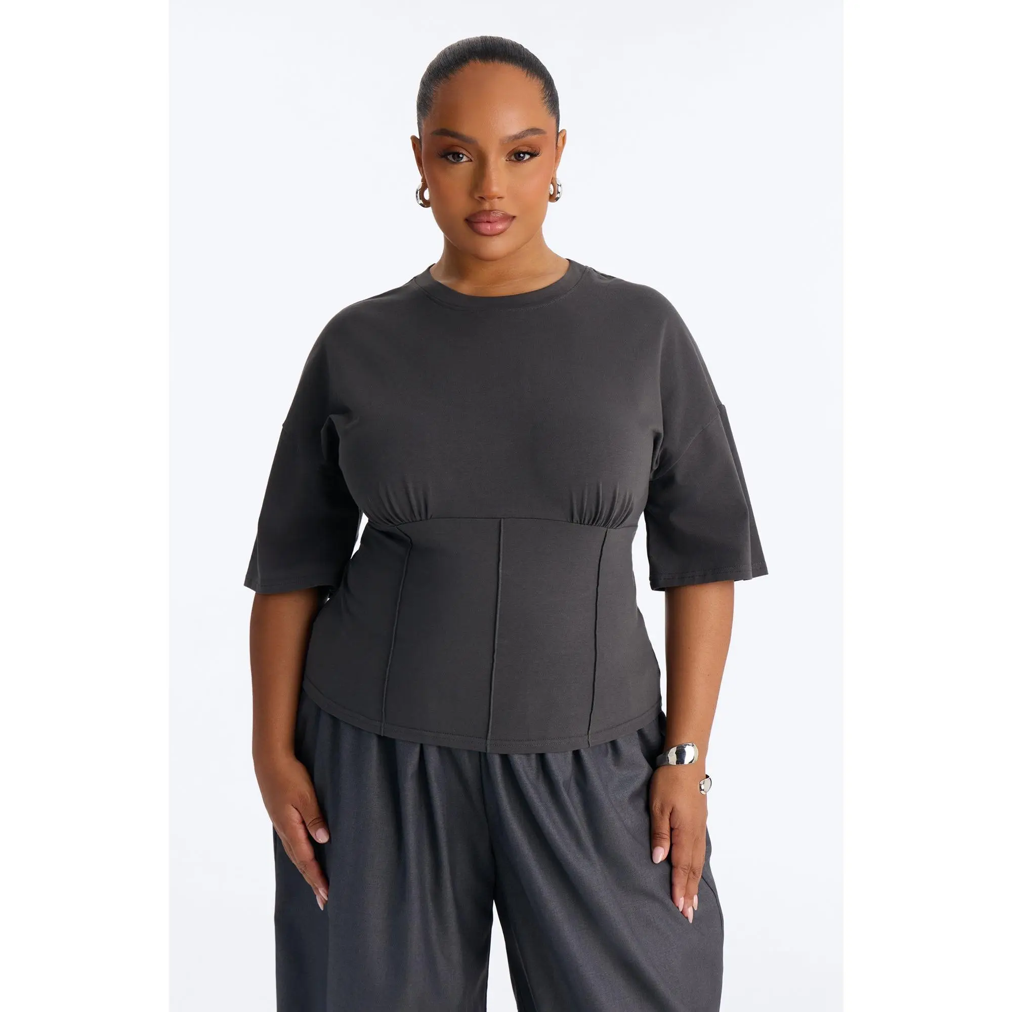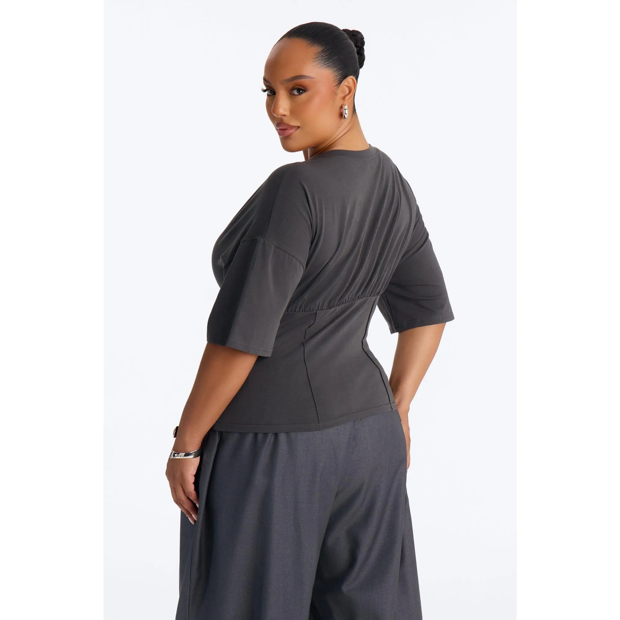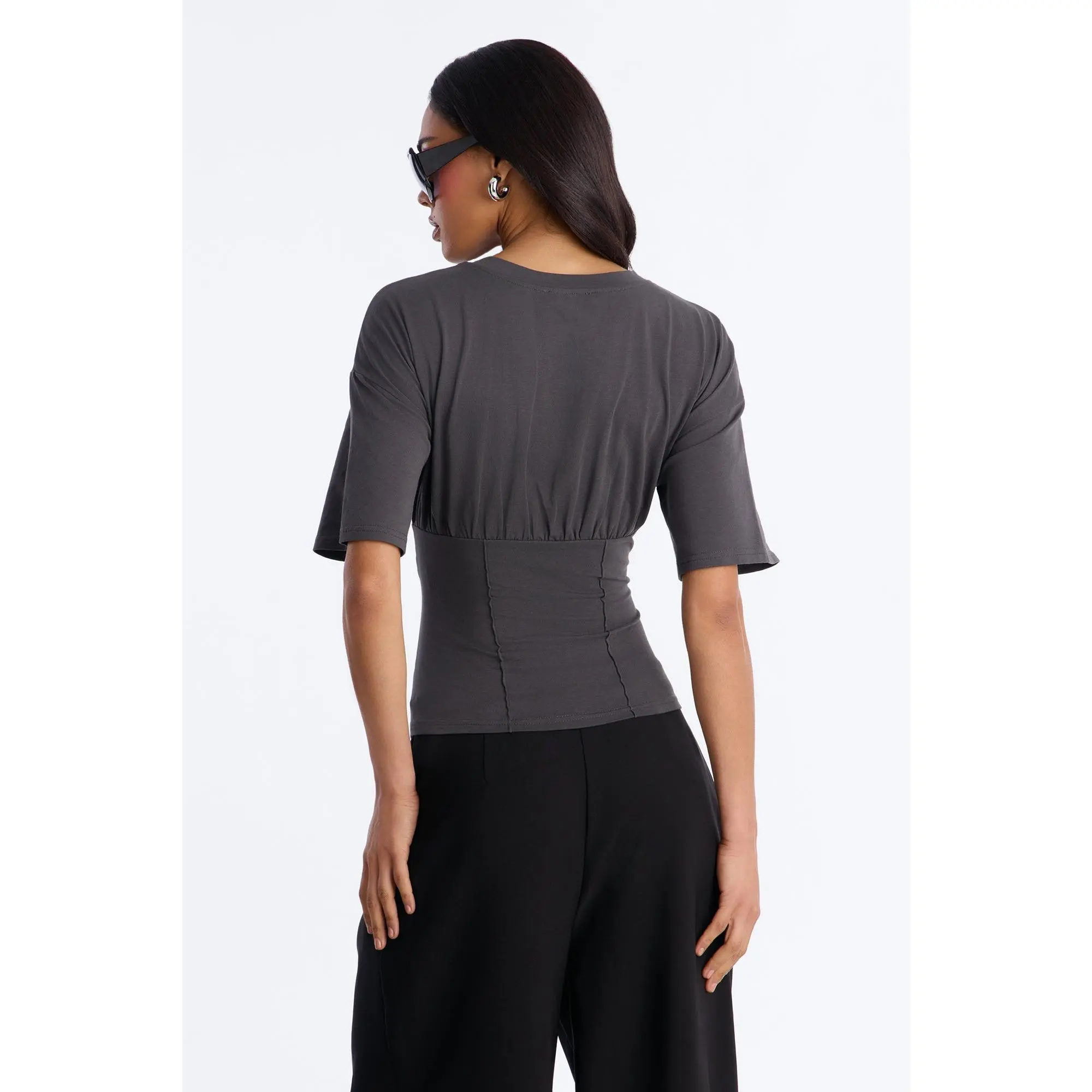 5. Kaylee Cinched Waist Short Sleeve T-Shirt - Charcoal
