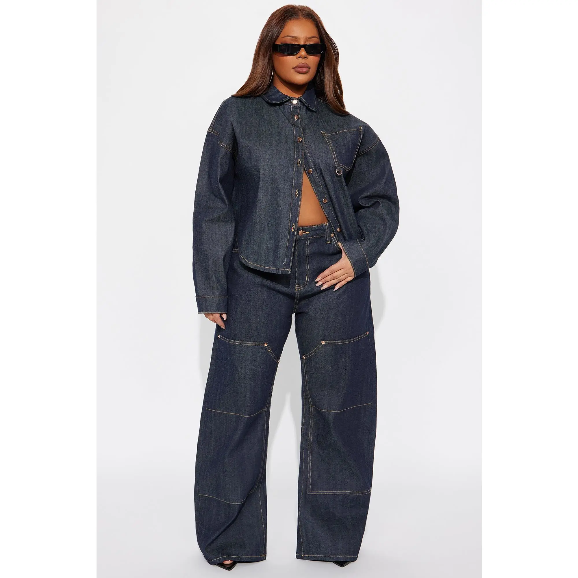 Day Dreaming Long Sleeve Denim Jumpsuit - Dark Denim