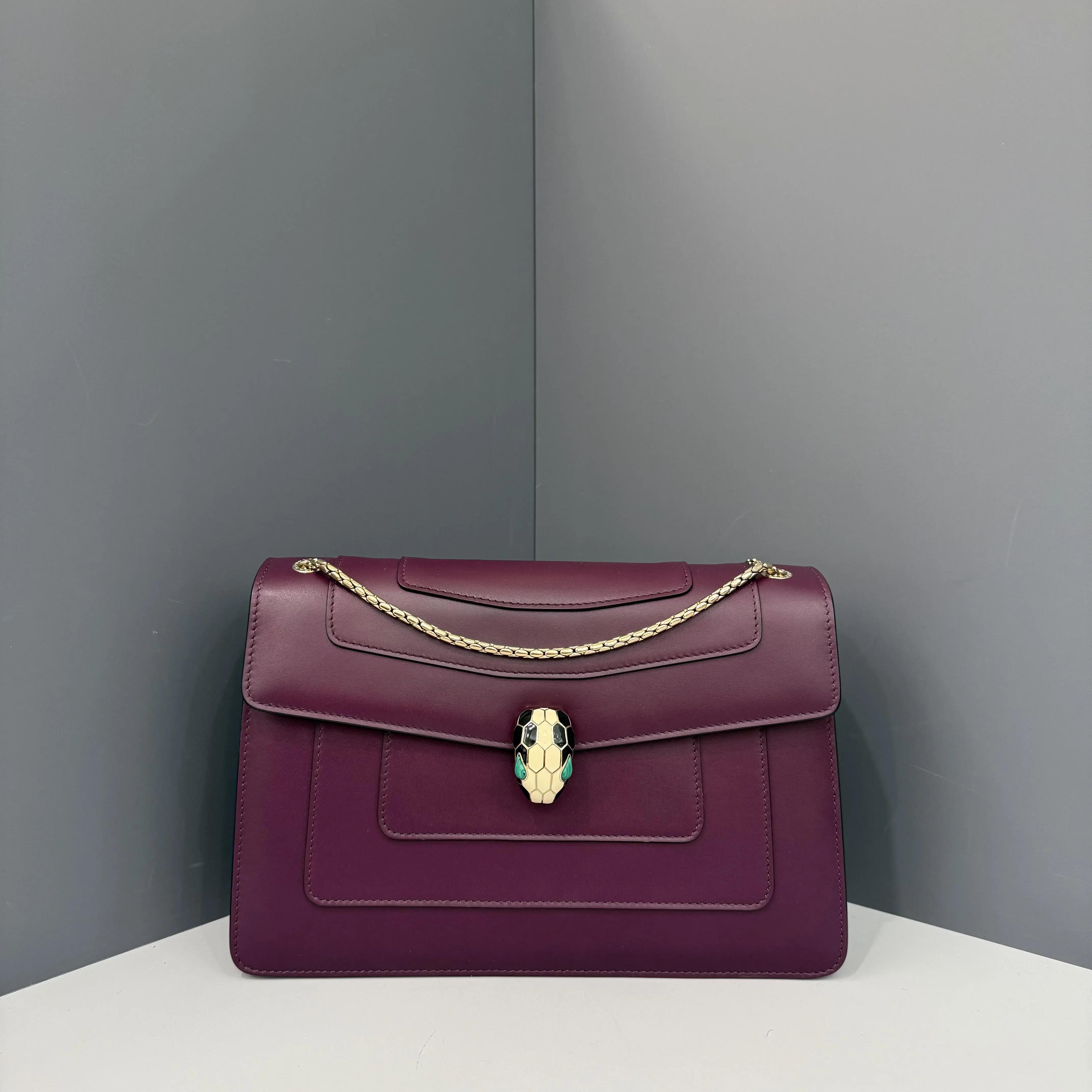 Pre-owned Bvlgari Large Serpenti Forever Shoulder Bag Calfskin Purple (qy030126a2)