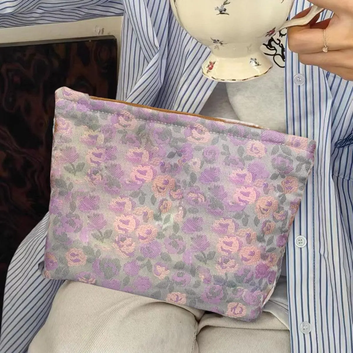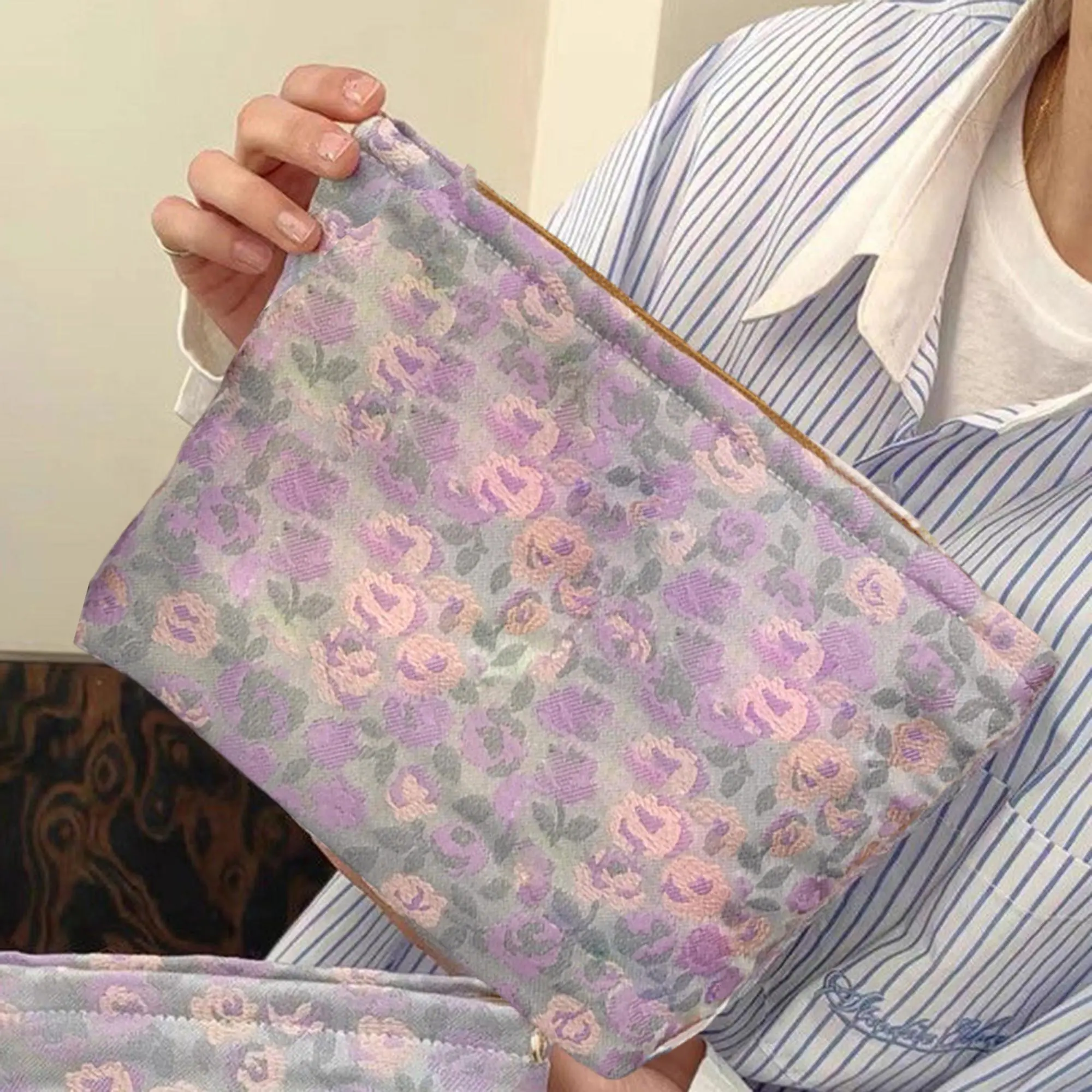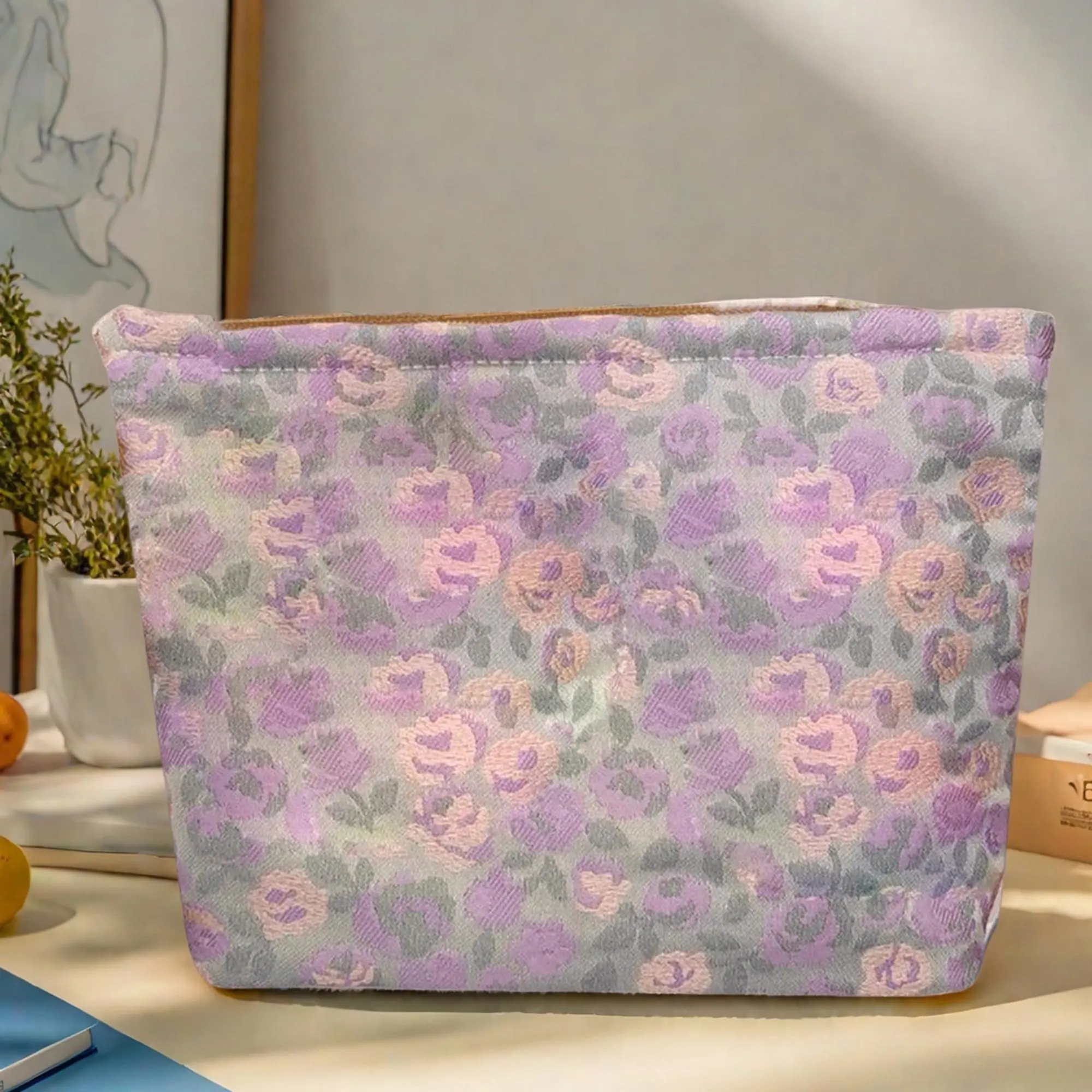 Elegant Cosmetic Pouch Stylish Travel Makeup Organizer with Zipper for Ladies and Teens Floral Print Beauty Case