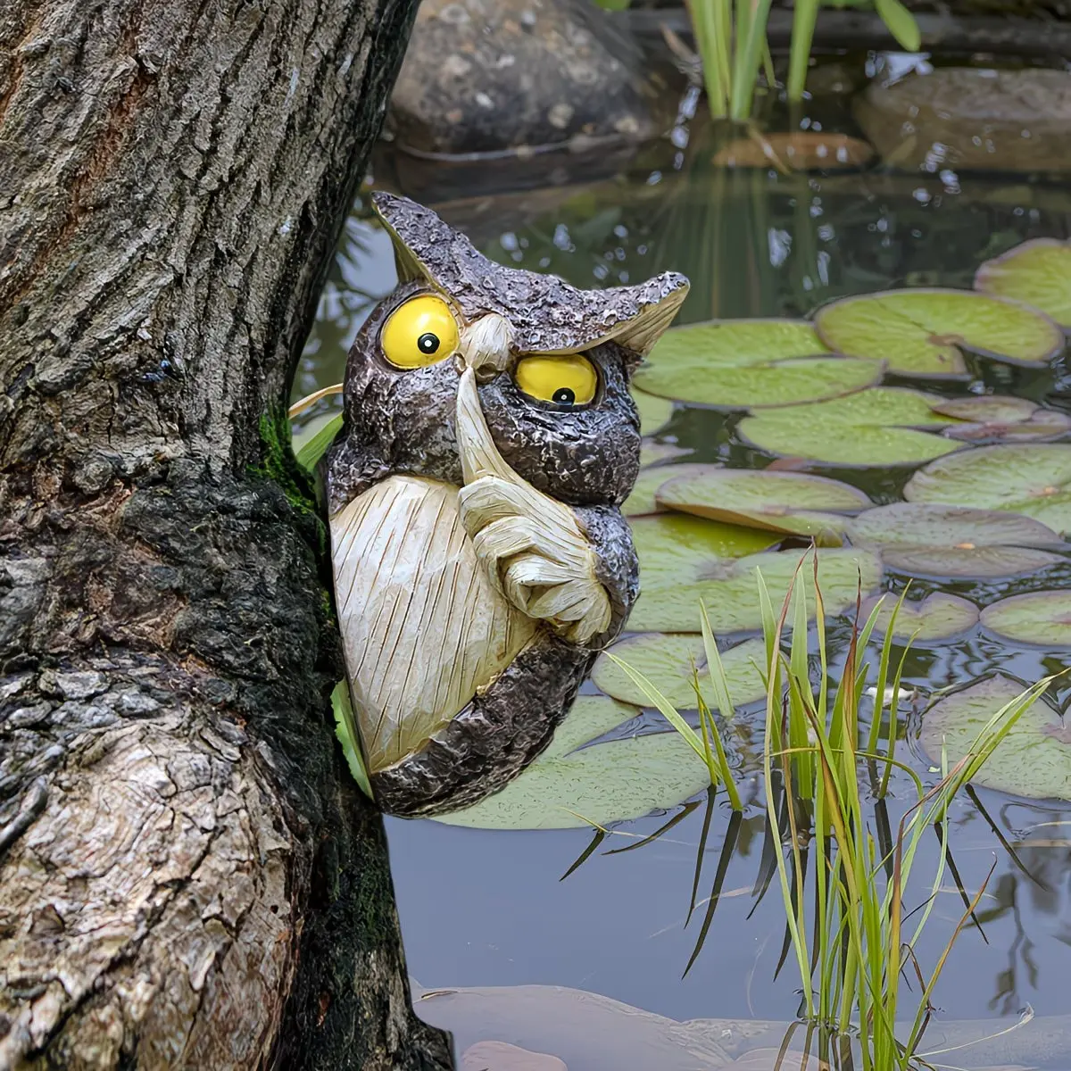1pc Hide and Seek Owl Resin Craft, Spring Garden Big Tree Decoration, Owl Tree Hanging, Home Fun Owl Wall Hanging, Pure Handmade Craft