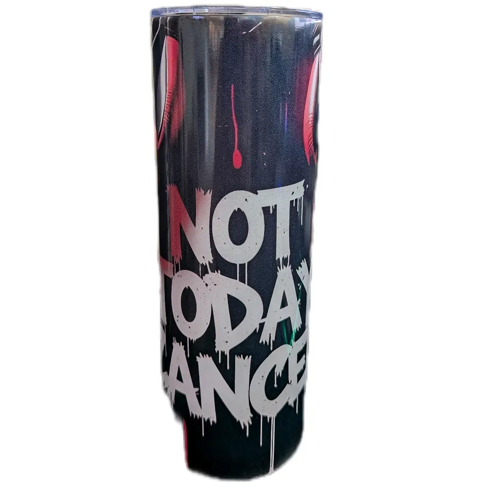 This tumbler features a striking boxing gloves design, symbolizing strength and resilience. The "Not Today" text adds a motivational touch, perfect for those facing challenges. Ideal for daily use, it combines style with a meaningful message.
