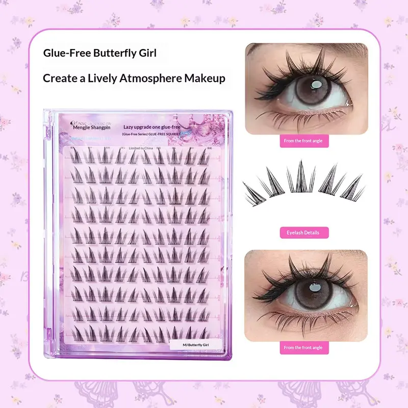 Large Capacity Self-Adhesive Glueless False Eyelashes Fluffy Winged Fox Eye Natural Volume Lashes Reusable Easy Removal 11-13mm
