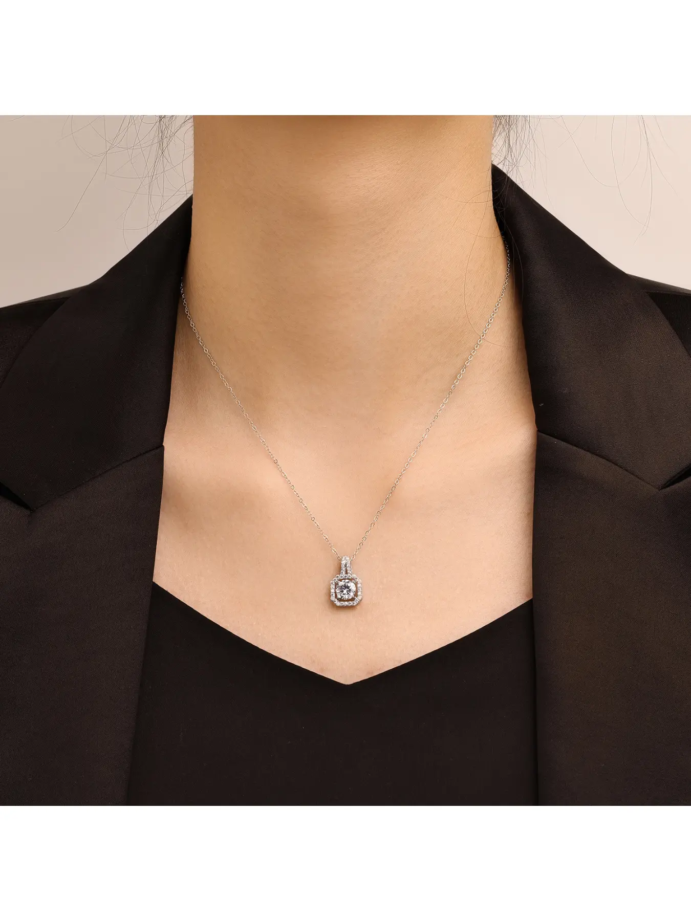 Cross-border live broadcast zircon summer high-end non-fading Chinese Valentine's Day gift square perfume bottle pendant necklace