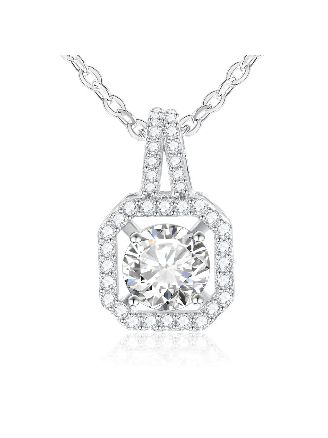 Cate & Chloe Amora 18k White Gold Plated Halo Heart Pendant Necklace for Women – Simulated Diamond Crystal Heart Pendant on 16–18 Inch Cable Chain – Hypoallergenic, Lead & Nickel Free – Luxury Gift Box Included, Perfect Romantic Jewelry Gift
