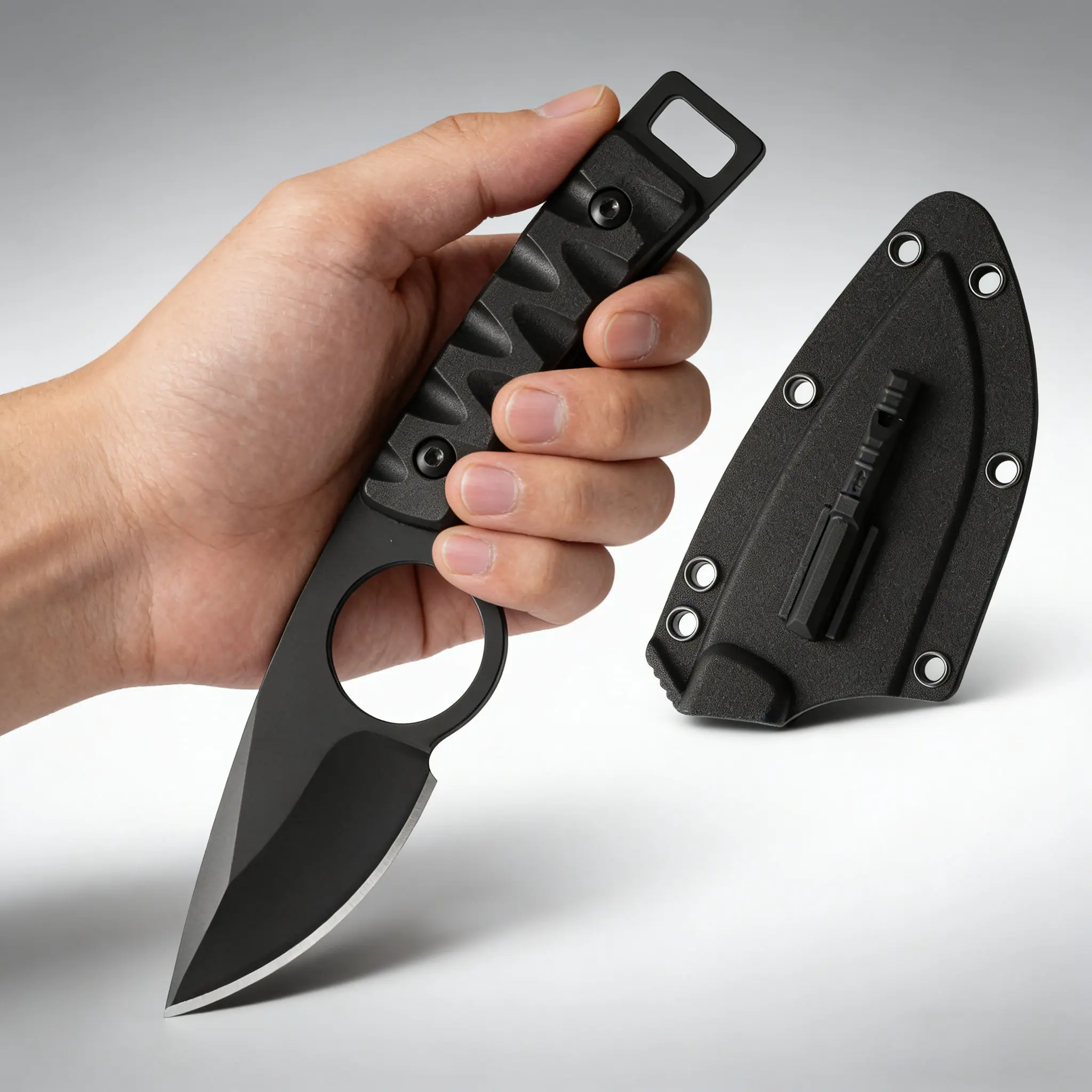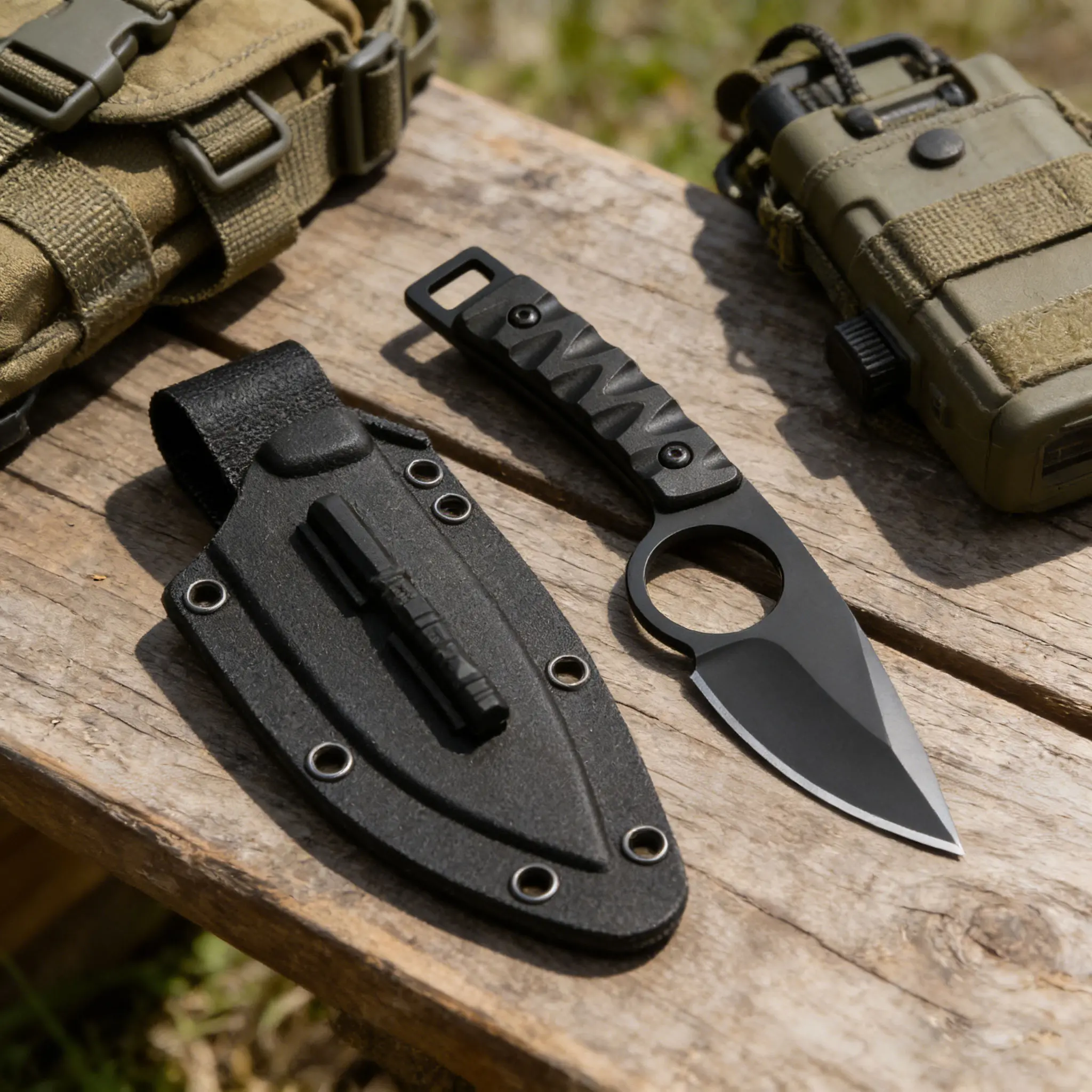 EDC Fixed Blade Survival Knife with Kydex Sheath, Tactical Hunting Knife for Camping Hiking, Outdoor Utility Knife with Serrated Edge, Durable Camping Gear for Men
