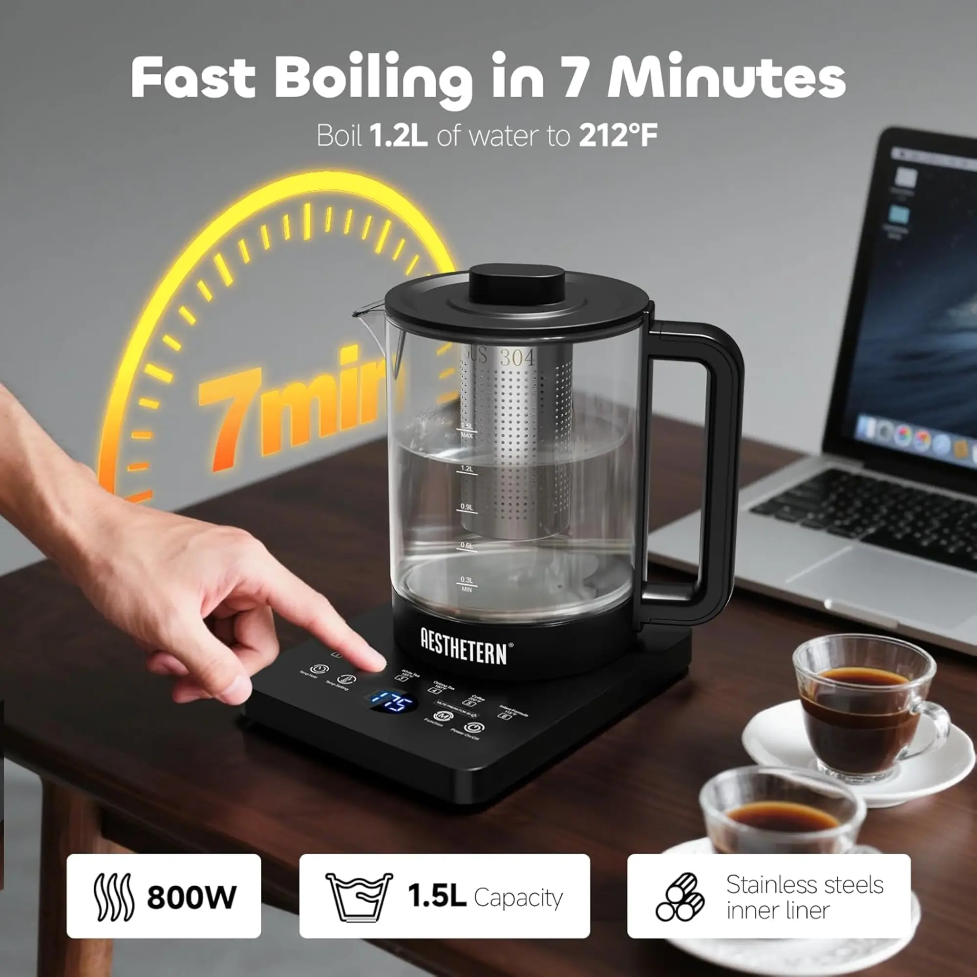 AESTHETERN AES-EK-BLK02 Tea Kettle With Infuser Temperature Control