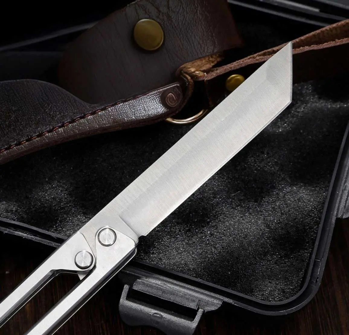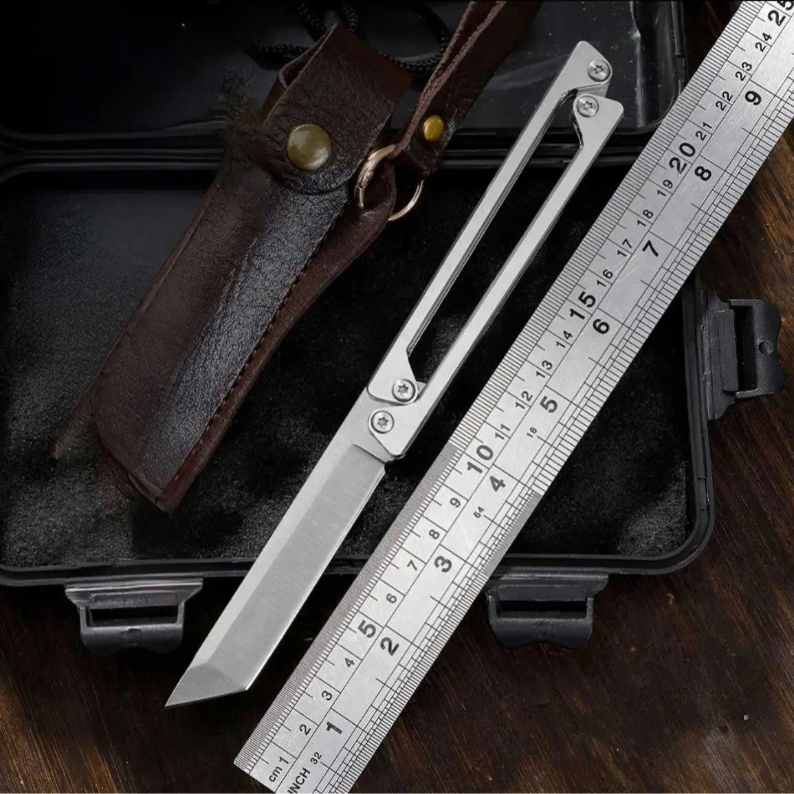 Portable Folding Utility Knife with Leather Sheath, EDC Outdoor Cutting Tool for Camping