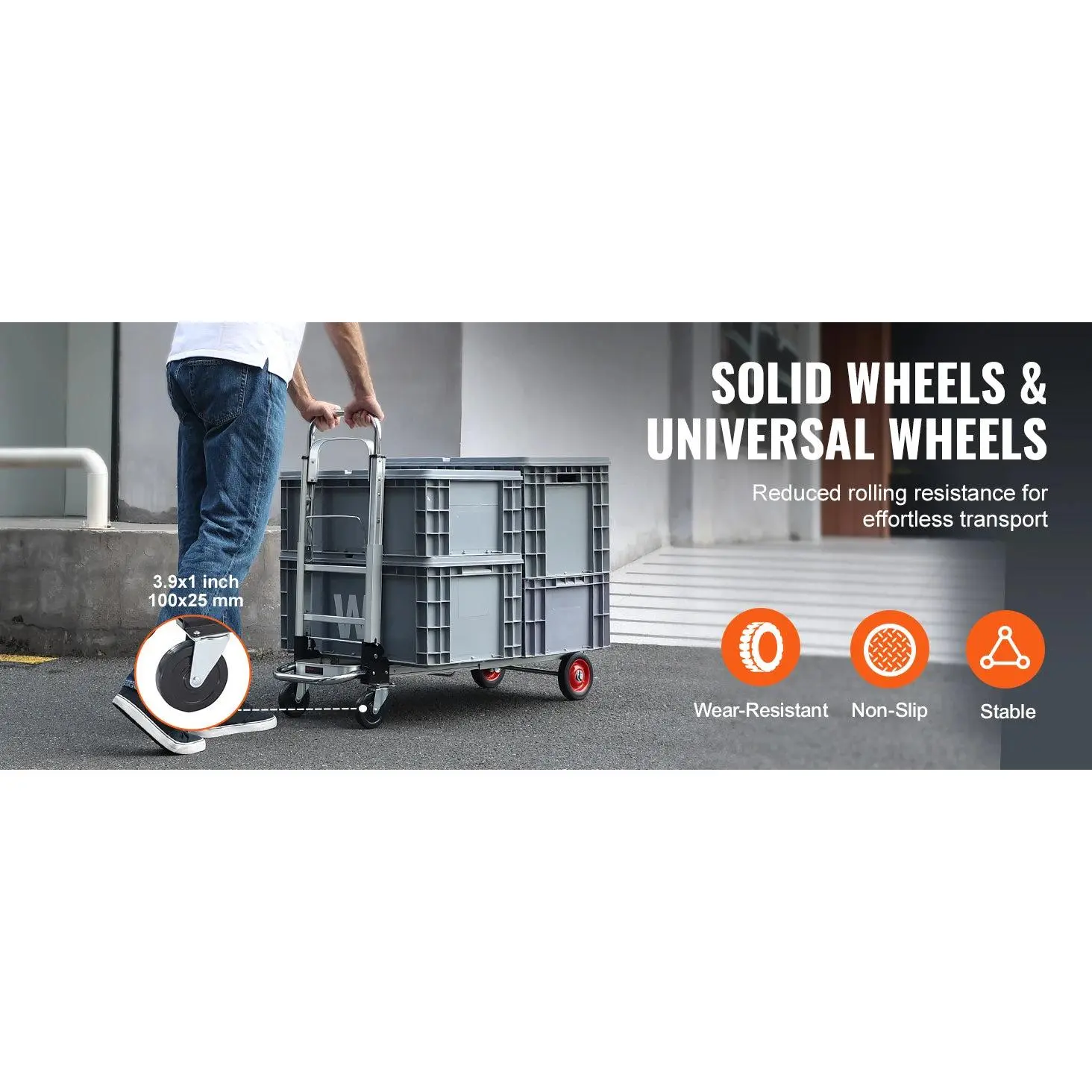 ·High Load Capacity: Ready for some heavy lifting? Meet your new best friend. With a hearty weight range of 250 to 400 pounds, this hand truck won't break a sweat for hauling, carrying, or transporting. Platform Truck Mode Size: 15.1"L x 42.3"W x 34.1"H; Hand Truck Mode Size: 15.1"L x 15.8"W x 42.3"H.