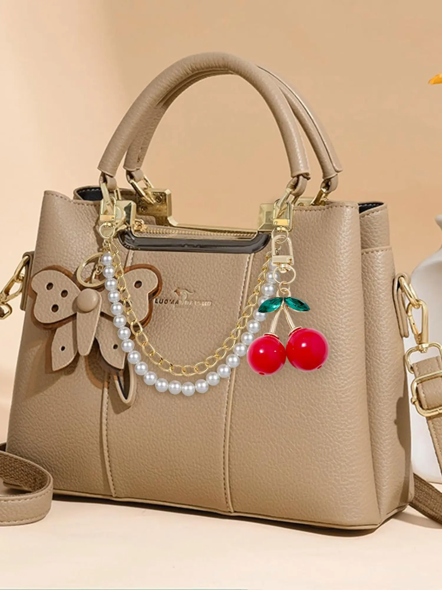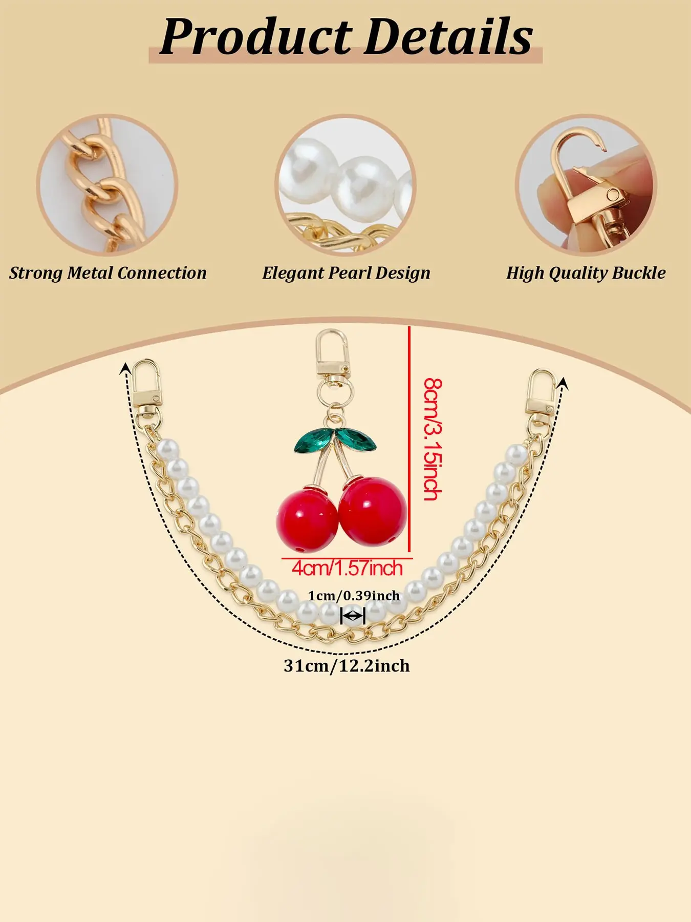 Cherry Link Imitation Pearl Bead Purse Chain, Bag Charm Pearl & Cherry Keychain, Replacement Extension Chain for Women