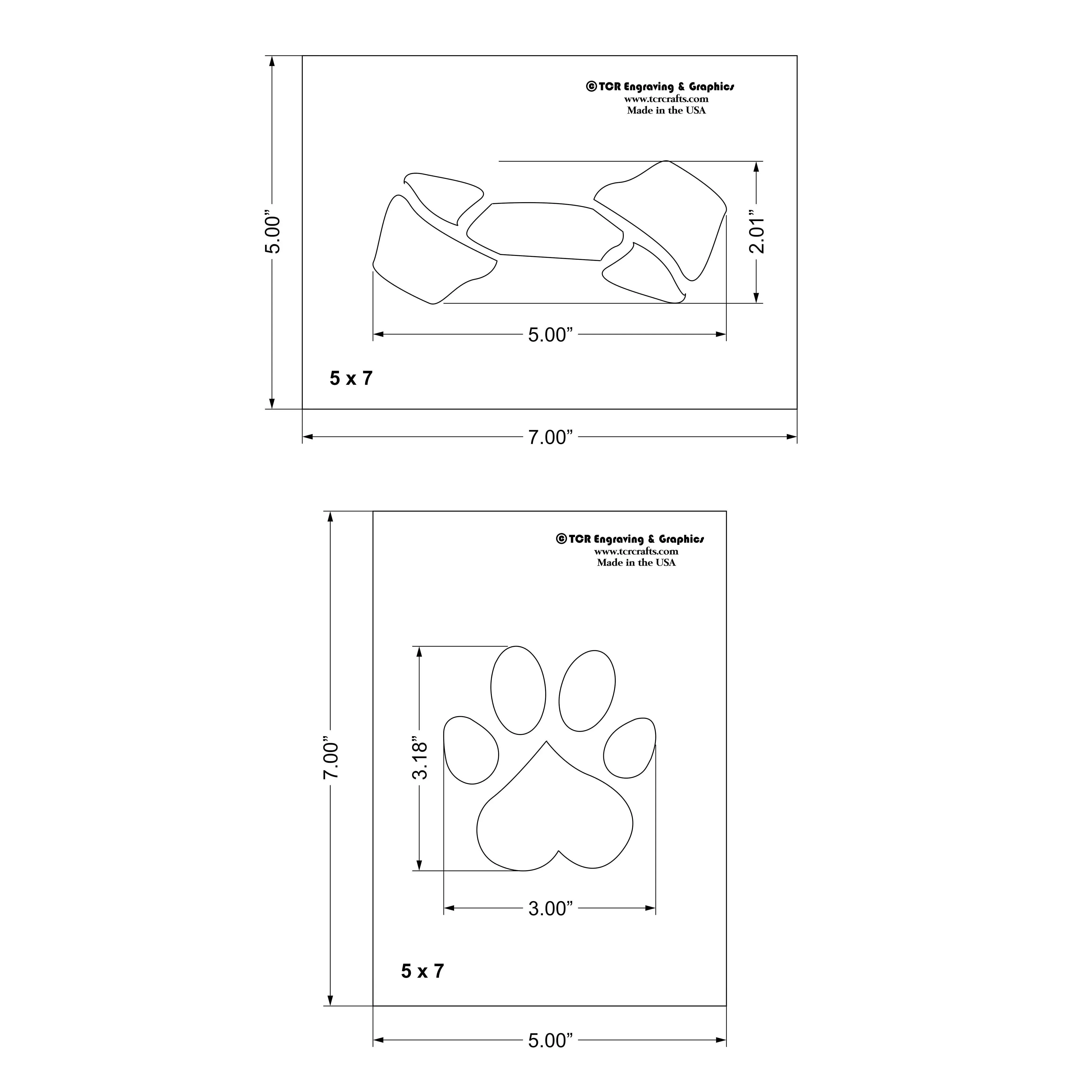 Dog Bone Paw Print Stencils 2 Piece Set 5 x 7 Inches