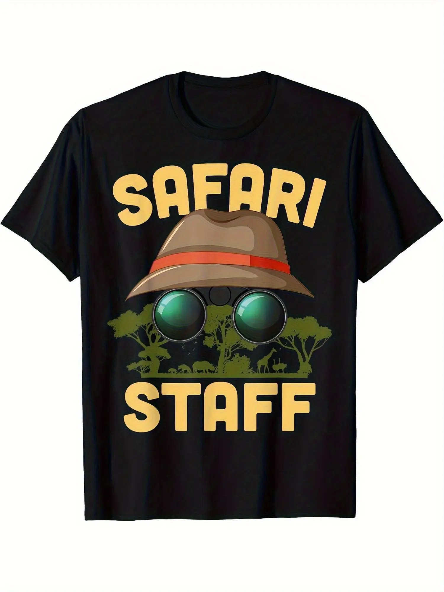 Men' & Women' Safari Staff T-Shirt - Glossy Safari Shirt with SAFARI STAFF Print, Black Short Sleeve Jungle Theme Costume Apparel for Zoo Workers, Machine Washable Casual Wear Gift