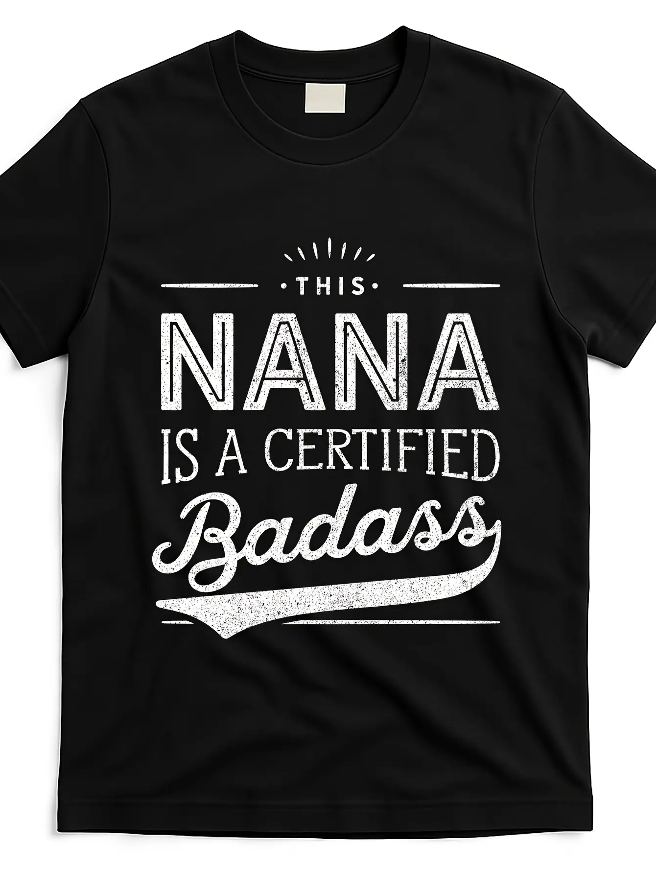 Heavyweight Cotton T-Shirt - Certified Badass Nana Graphic, Funny Gift for Nana, 220GSM Unisex Adult Casual Tee with Bold Typography & Star Design, Machine Washable Black Shirt for Summer, Round Neckline, Durable Fabric