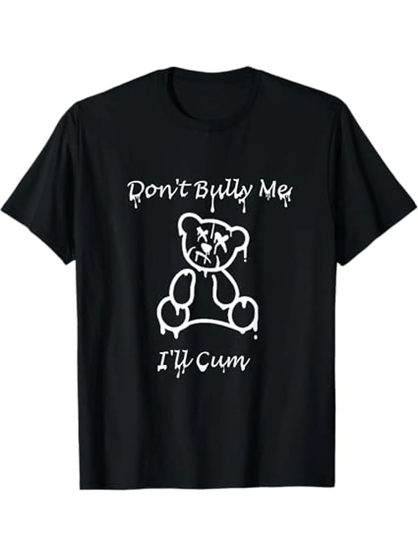 Men's "Don't Bully Me I'll Cum" Graphic Bear T-Shirt - Bold White Print on Black Casual Short Sleeve Tee, Durable Machine-Washable Round Neck Top for Casual Attire, Comfortable Fit Shirt