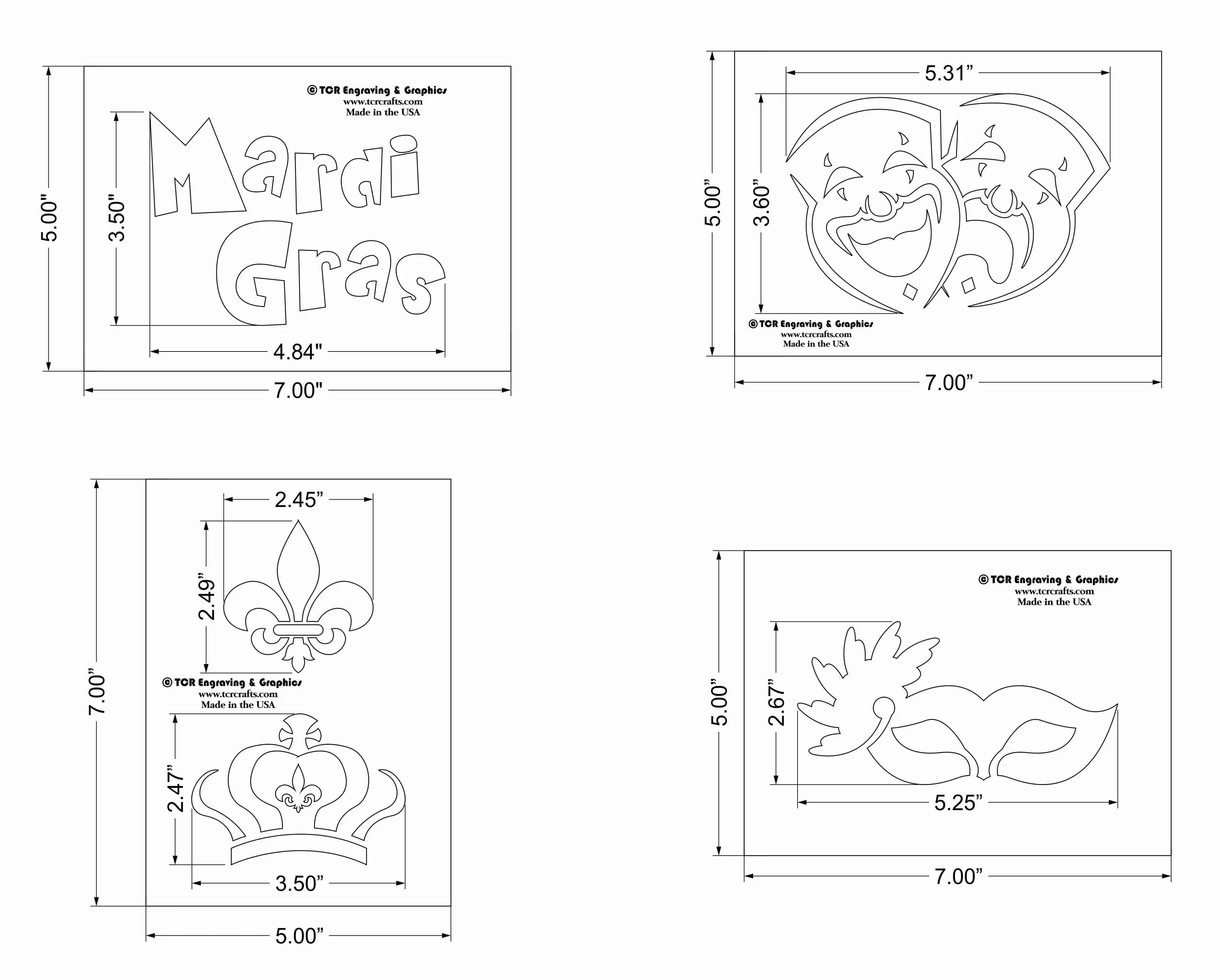 Mardi Gras Stencils 4 Piece Set 5 x 7 Inches