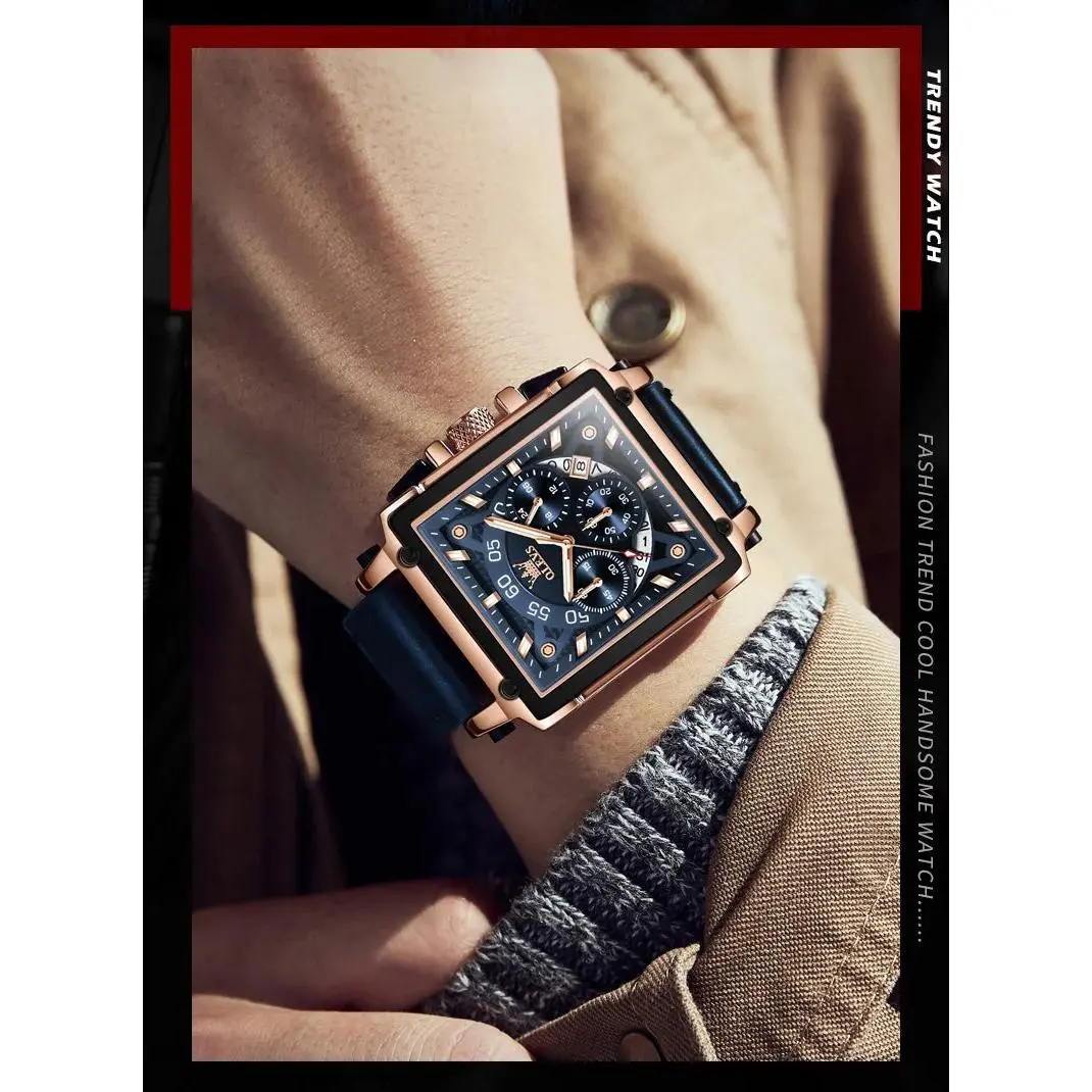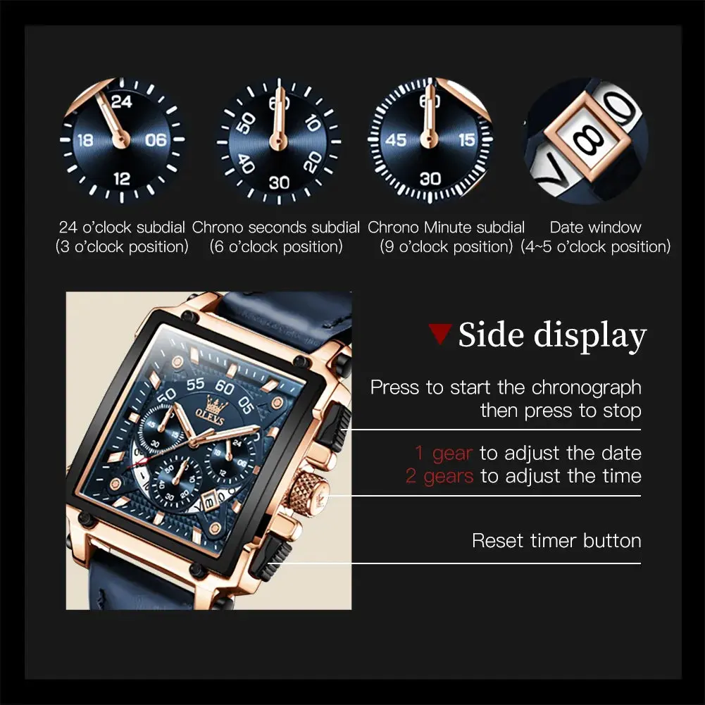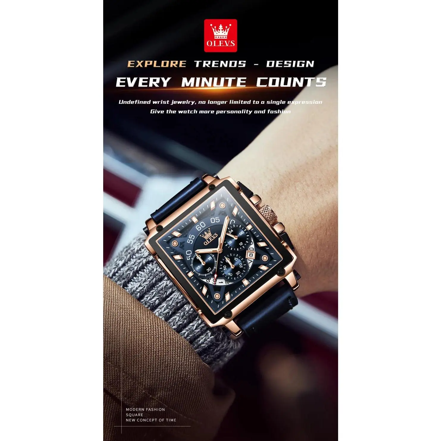 OLEVS 9919 Chronograph Multifunctional Quartz Men's Watch Leather strap 45MM Square Big Dial Leisure Sports TOP Brand Male Watch