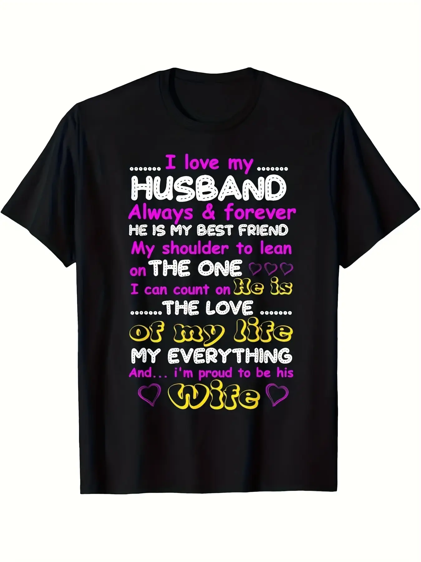 Funny I Love My Husband Forever T-shirt Comfortable, Casual Short Sleeve, Daily Wear, All Season, Black, Men 220g