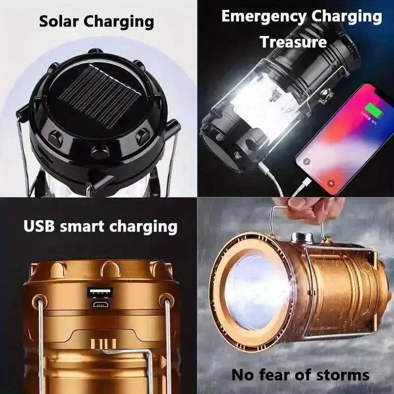 LED Camping Lantern, Solar and Rechargeable Lantern Flashlight Collapsible and Portable Light for Daily/Camp/Hiking/Night Fishing/Emergency/Hurricanes/Storm(1 Pack)