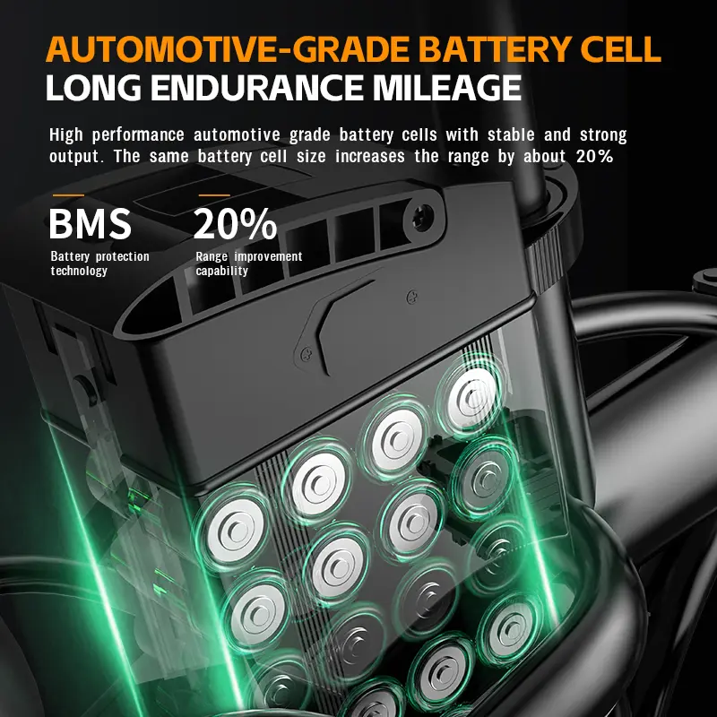 800W Peak Power: Strong enough to tackle small slopes and daily rides easily, no more struggling with steep roads! It’s the all-round choice for daily use, balancing power and energy saving perfectly.