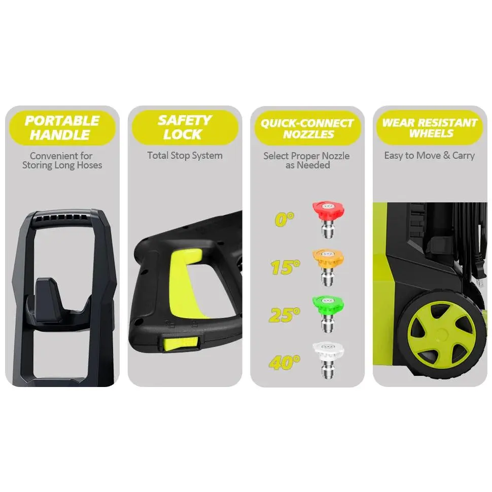 Powerful Performance: With 5000PSImax of pressure, our electric pressure washer blasts away even the toughest dirt, grease, and molds. Whether your driveway, patio, car, or outdoor furniture, this machine makes cleaning effortless