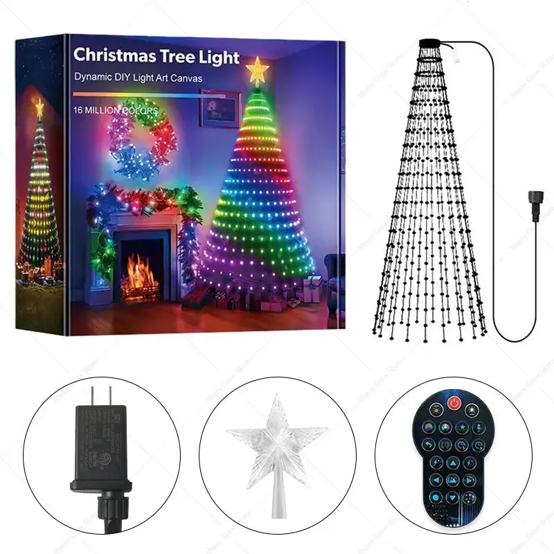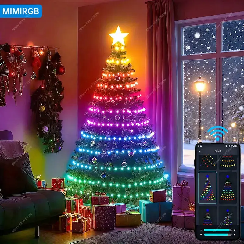 6.9FT Christmas Tree Lights 400LEDs Bluetooth App Control RGB Music Sync Multi-Color Flashing Holiday Decor Christmas Lighting