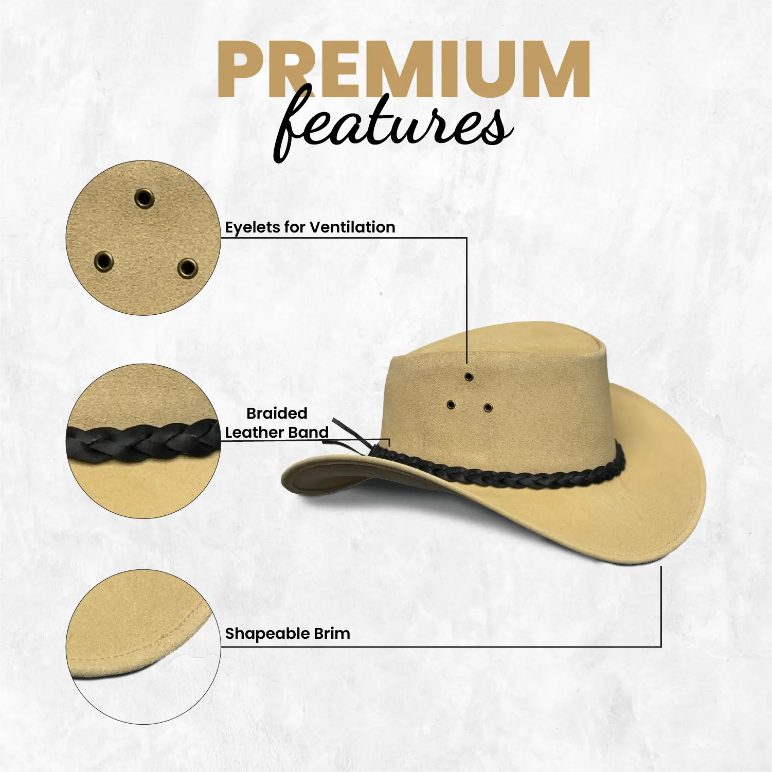 Braided Leather Band – Adds an authentic western touch.