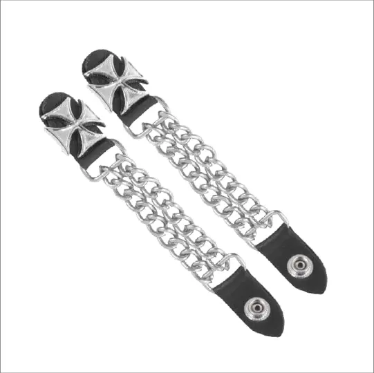 Motorcycle Vest Extenders Double Bike Chain Biker Iron Cross Silver