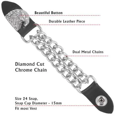 Eagle Leather Motorcycle Vest Extenders for Men Biker Double Chrome Chains