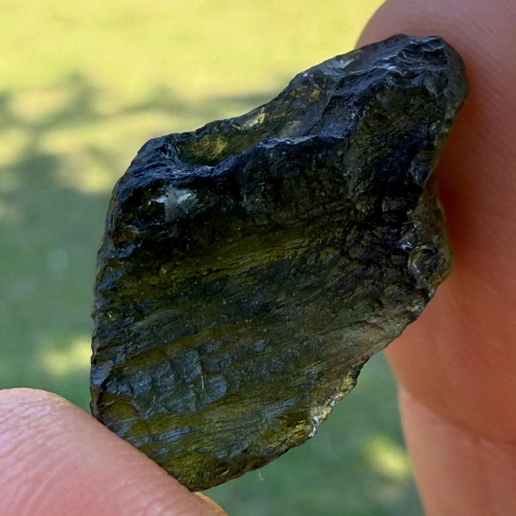 Fake Moldavite warning: Glass replicas lack natural etching, have uniform bubbles, and feel "dead" energetically.