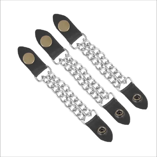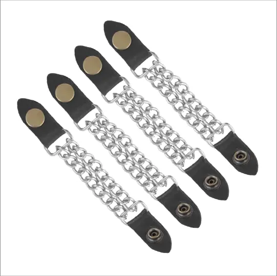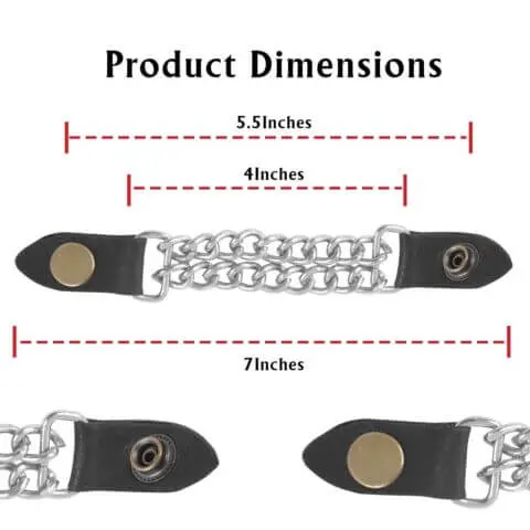 Motorcycle Vest Extenders Plain 7" Inch Long Chain Chrome with Leather