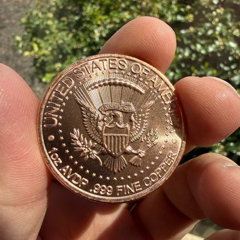 A beautiful copper round one ounce copper, tribute to the greatest President to ever live. Get yours today! Make a wonderful gift.