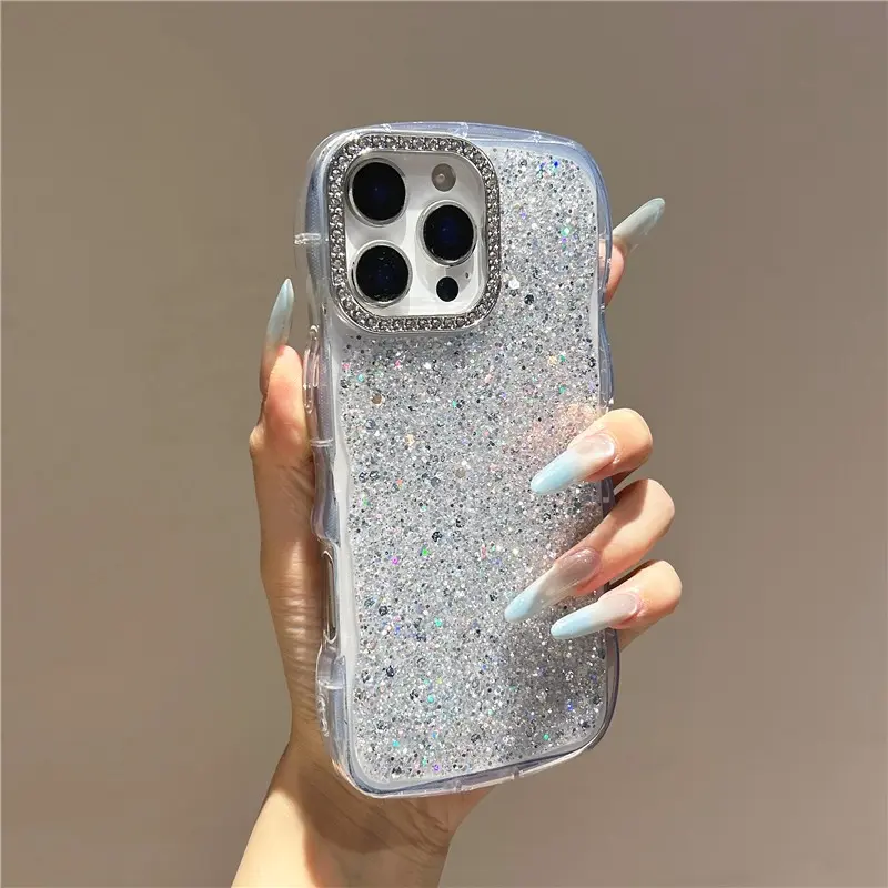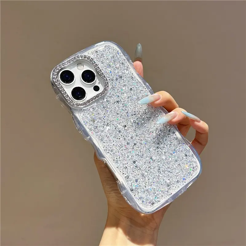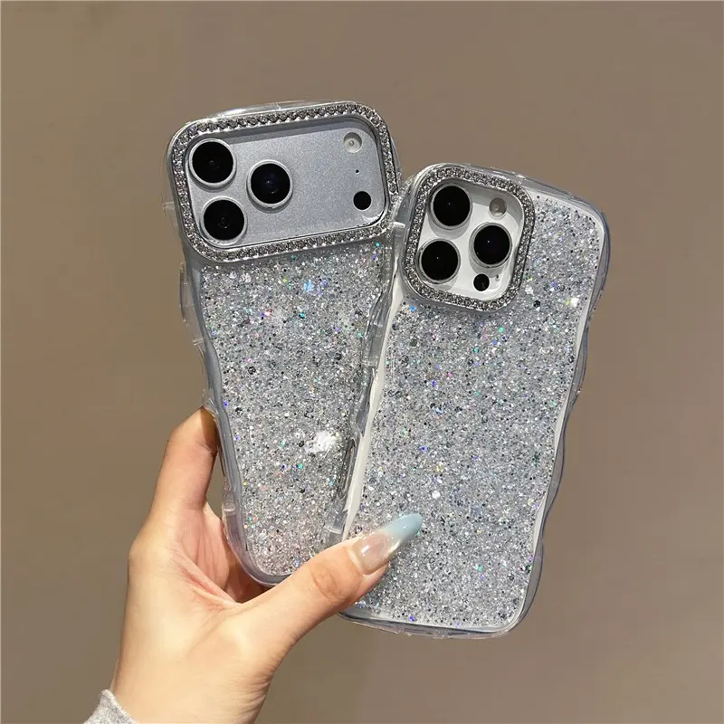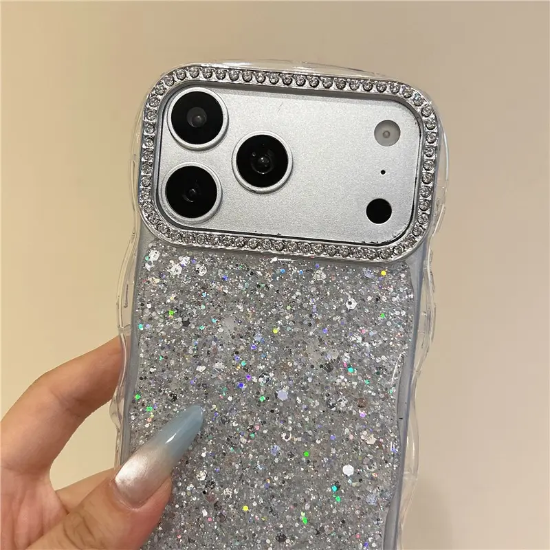 Water Ripple Glitter Phone Case for iPhone 13/14/15/16/17 Pro/Pro Max/Plus, featuring a luxurious sparkling diamond design, fashionable protective cover with unique style, ideal for daily use and device protection.