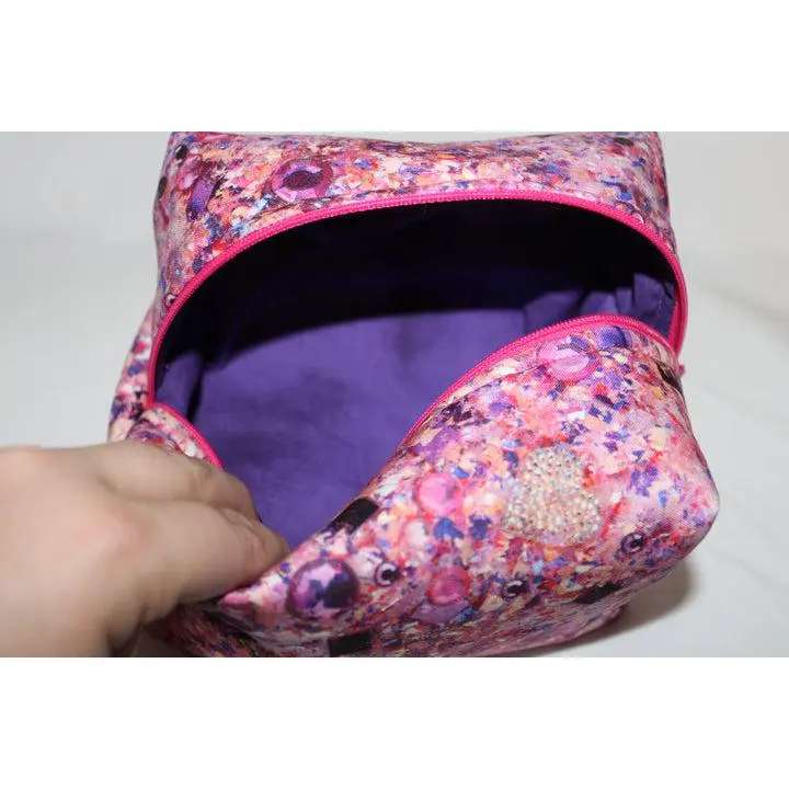 The Pinkalicious Bag is pure fun and feminine charm all wrapped up in one handmade piece. Bursting with vibrant pinks, purples, and glittering jewel tones, this bag sparkles with personality and confidence. Each stitch is lovingly crafted, making it both a statement piece and a reliable everyday companion. This bag features a hot pink zipper.
