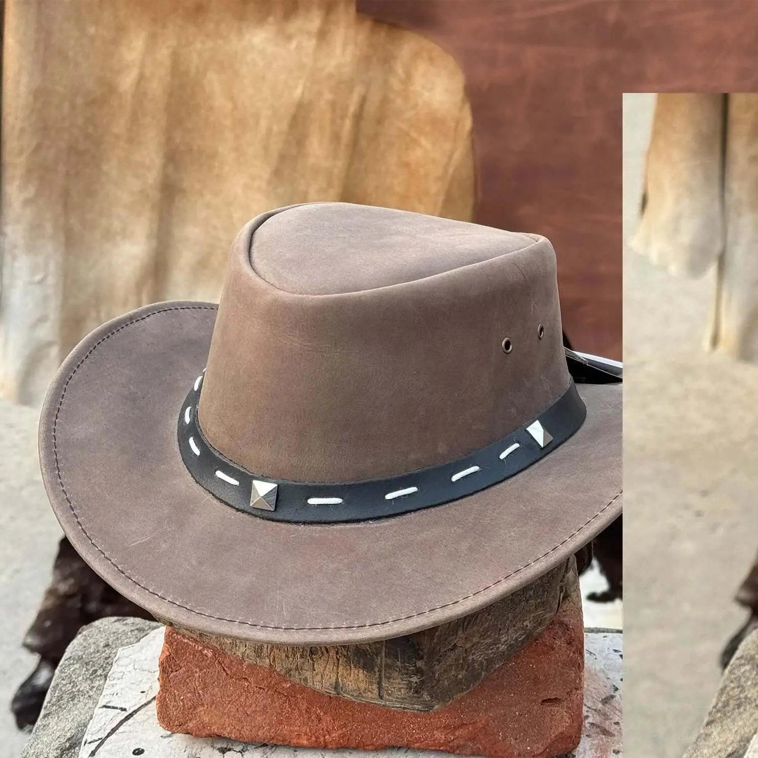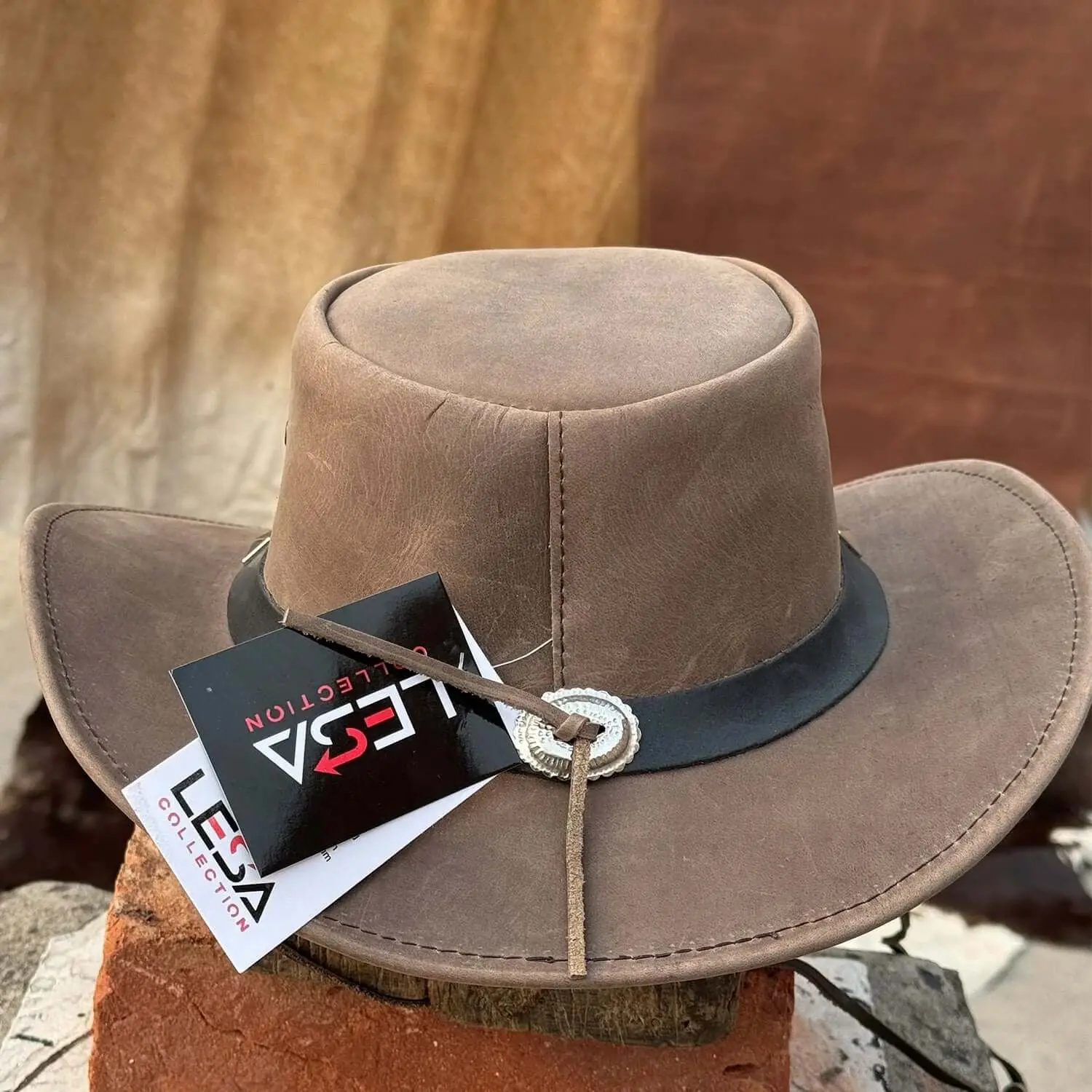Experience true Western style with the Barrie Outback Leather Cowboy Hat in Light Brown. Made from top grain cowhide leather, this hat is both stylish and functional, perfect for challenging adventures and casual day-to-day wear.