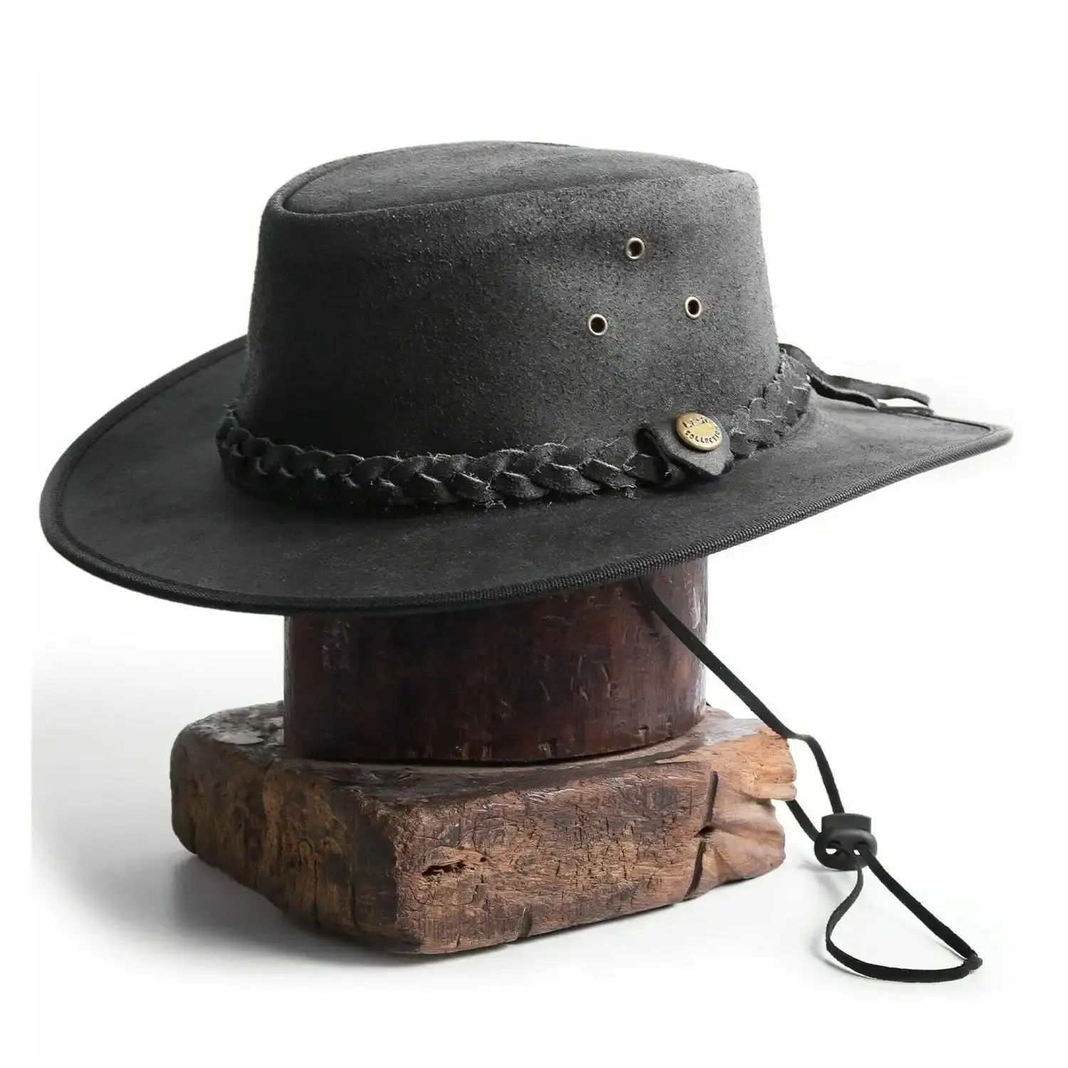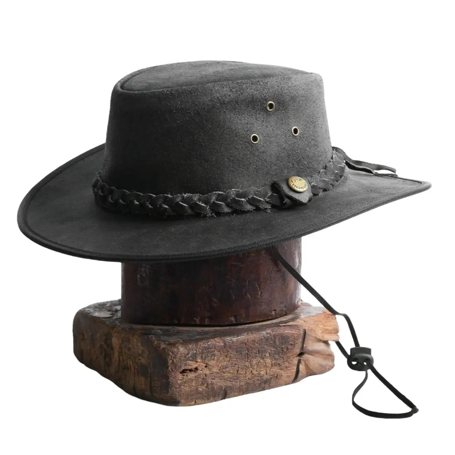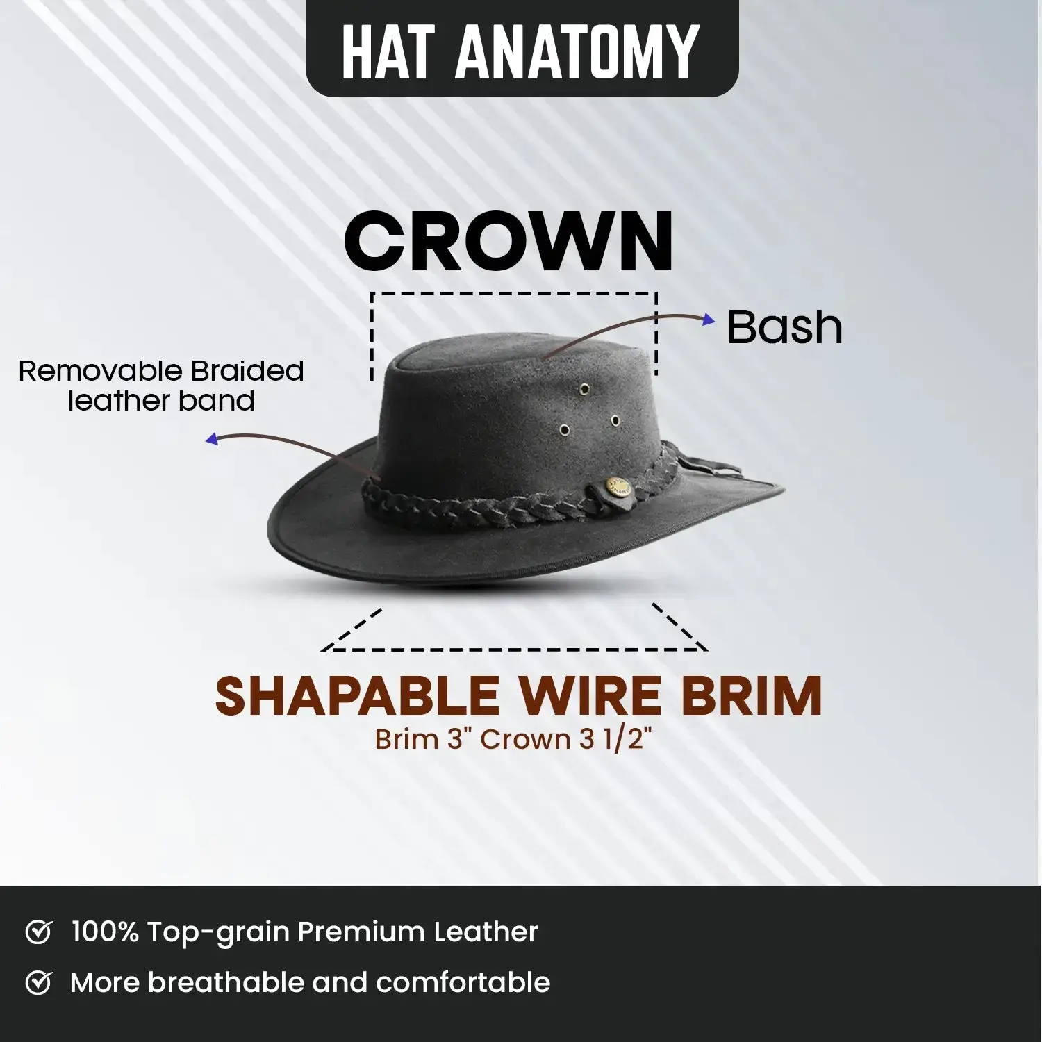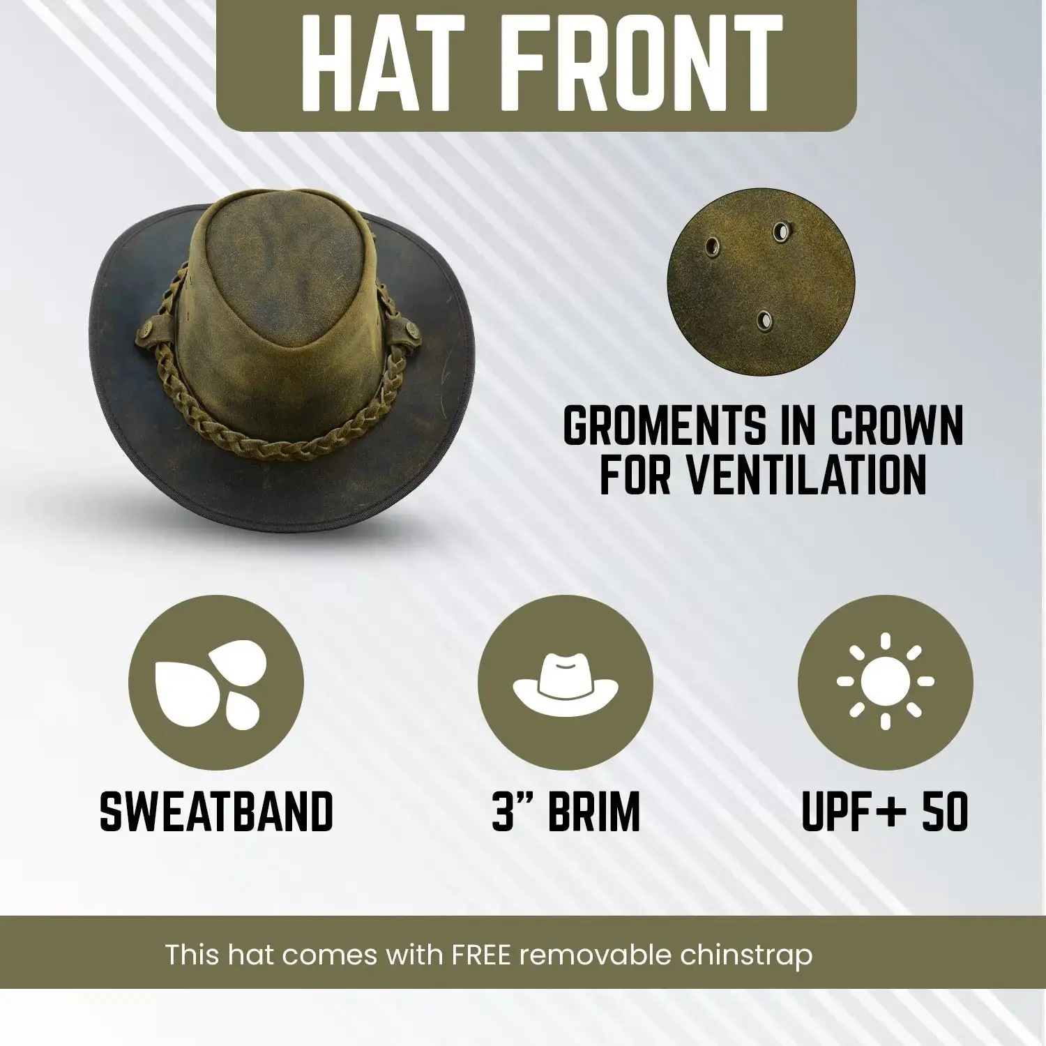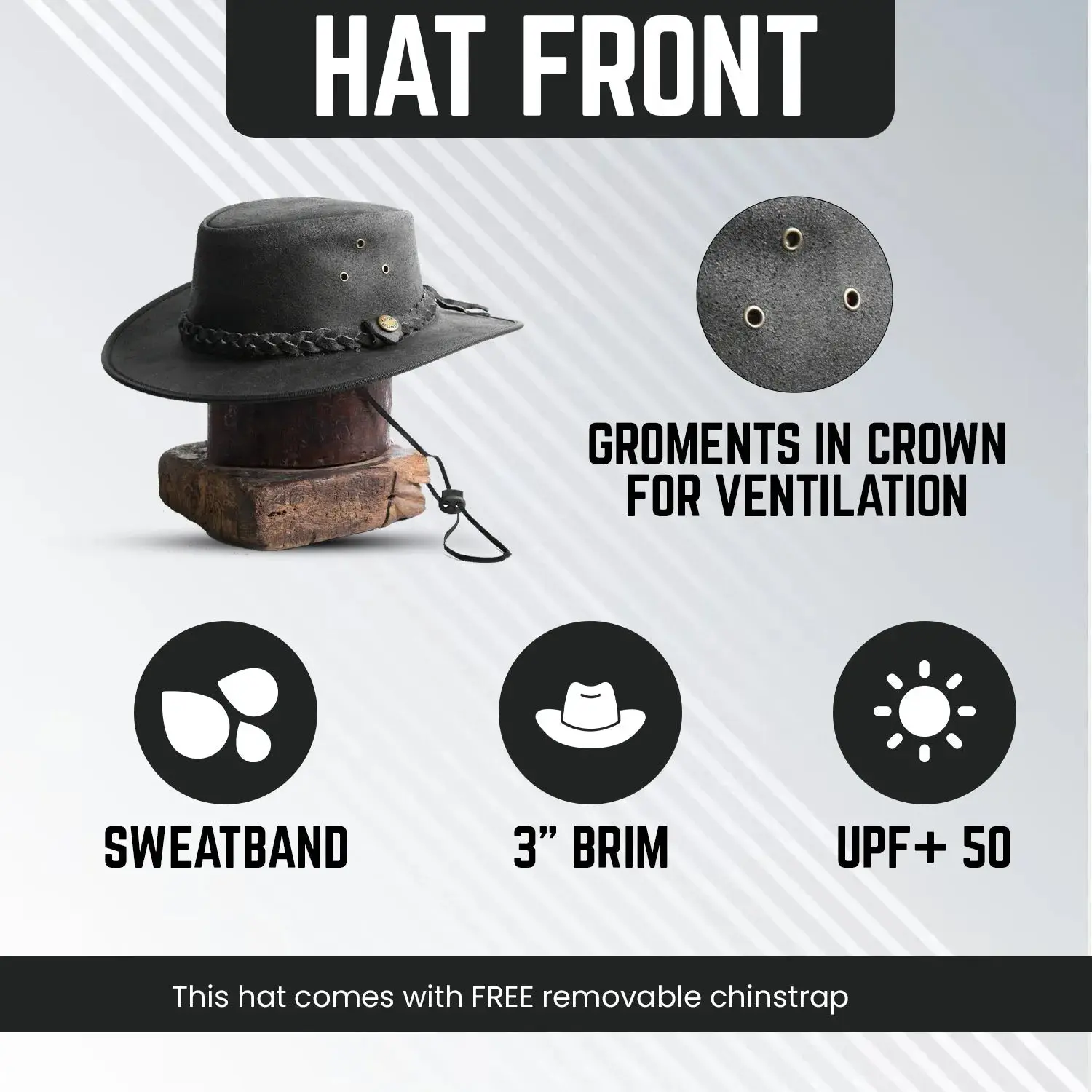 This Safari Crazy Leather Cowboy Hat is made from high-quality distressed leather, the Safari Crazy Cowboy Hat combines rugged Western style with all-day comfort. Whether you're heading down the trail, to a country music festival, or just enjoying a sunny day, this hat will provide you with style, sun protection, and a firm fit.