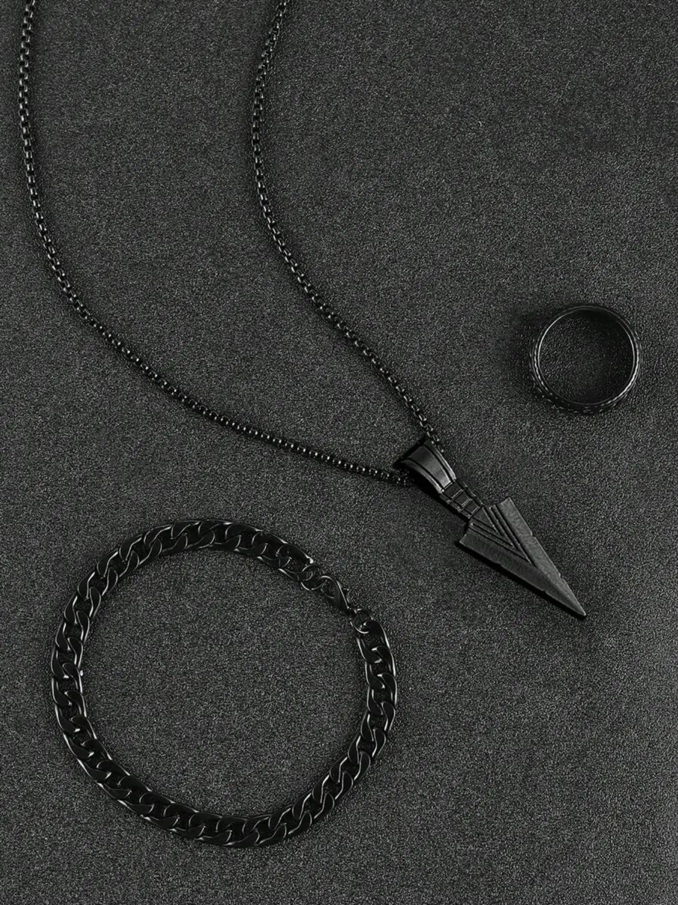 Men's 3-Piece Minimalist Chain Jewelry Set, Includes Necklace, Bracelet & Ring, Perfect for Casual, Sports & Daily Wear
