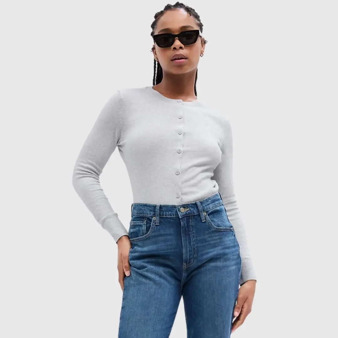 GAP Crewneck Cardigan Soft Cotton Knit Long Sleeves Ribbed Banded Cuffs Ethical Manufacturing for Gender Equity