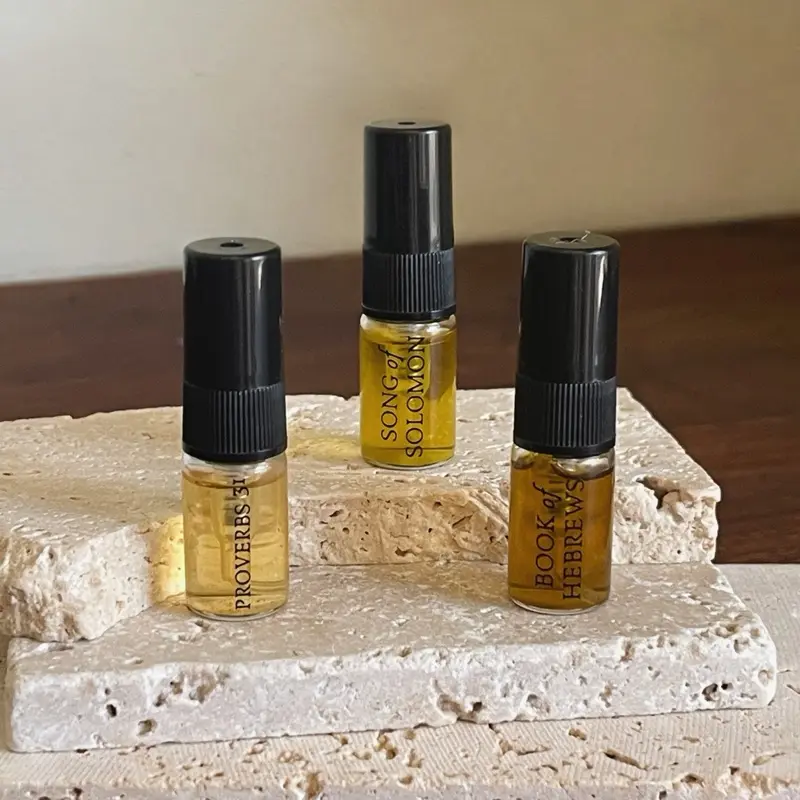 This is not modern perfume. It is scripture, distilled. A rare invitation to experience the Bible not just in word, but in aroma.