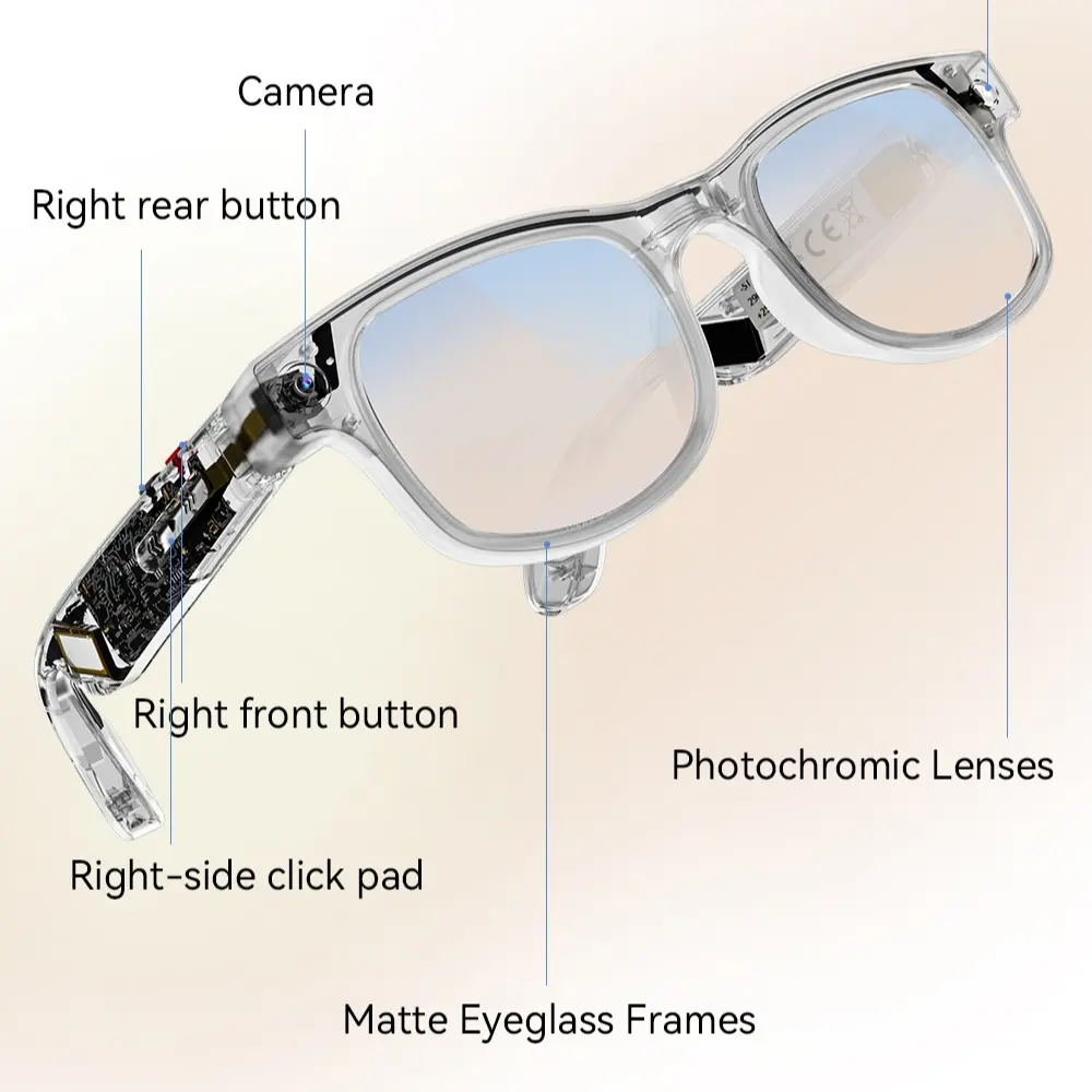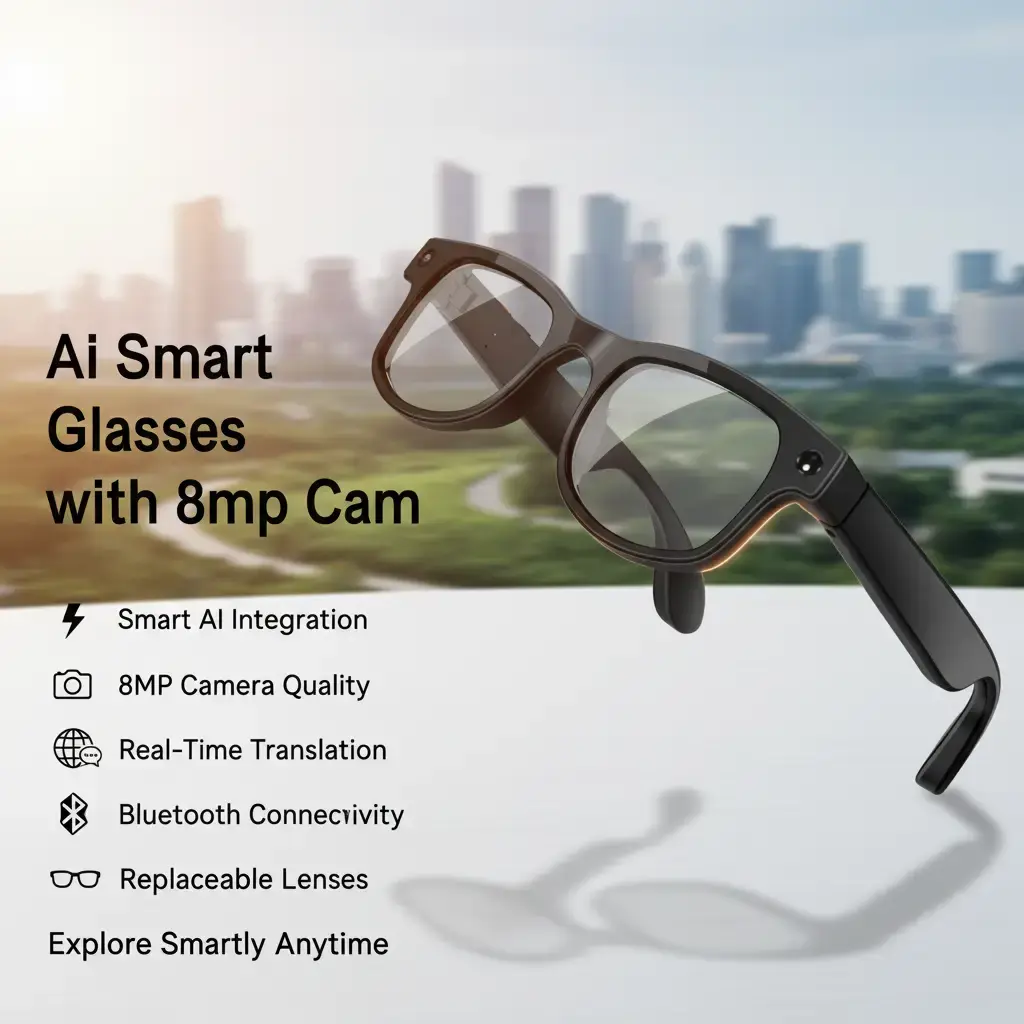 NEW Smart AI Glasses with 8MP Camera Video Recording Chatgpt 100+ Languages Real-Time Translation Bluetooth Call Music Play Replaceable Lenses Earphones for Travel Outdoor Adventures Cycling Wearable Devices