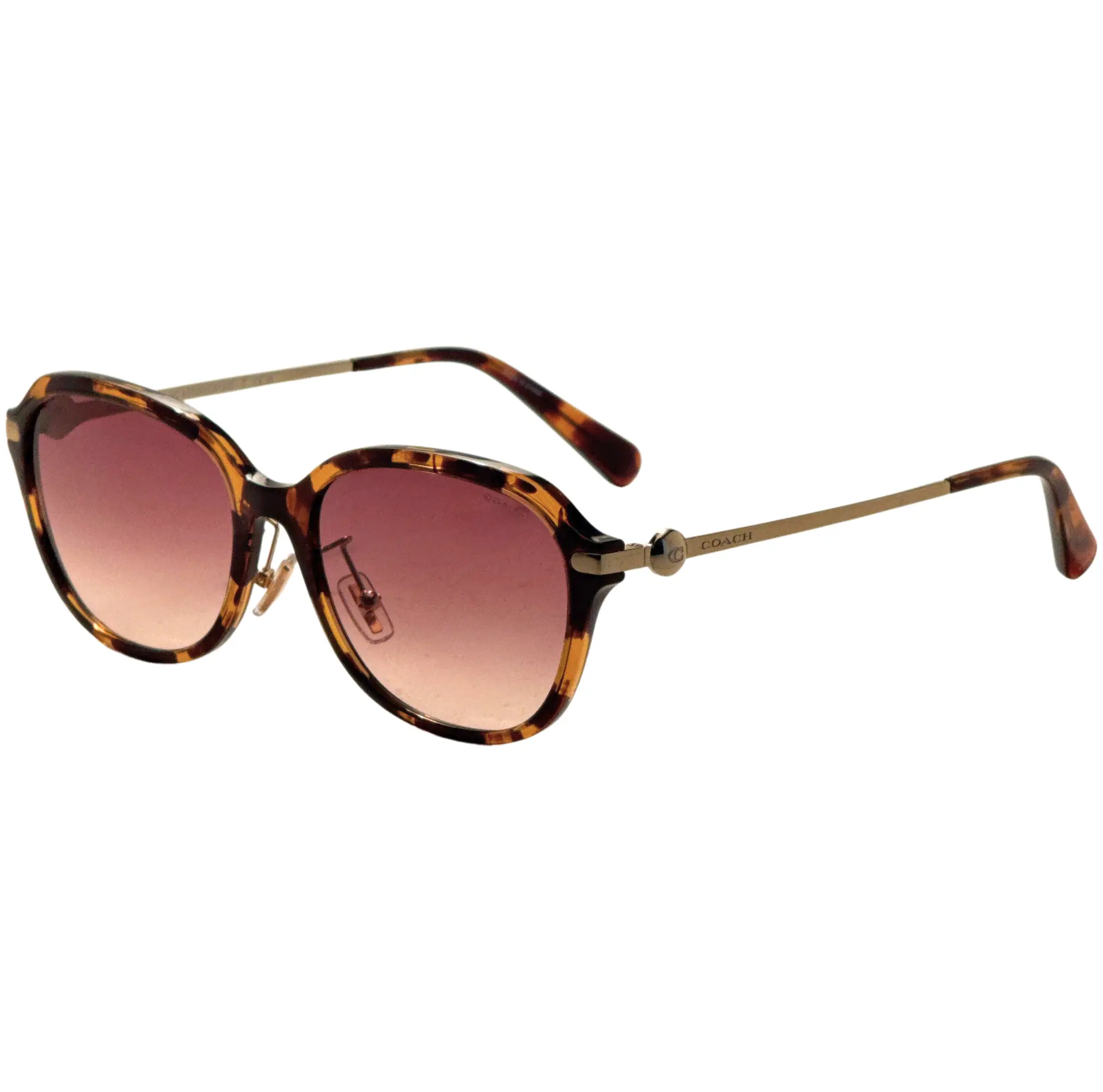 Coach Women's 56 mm Sunglasses - Dimensions: 56 mm x 17 mm x 145 mm - Frame Color: Dark Tortoise - Frame Shape: Round - Frame Material: Plastic - Lens Color: Brown Gradient - 100% UV Protection, Non-Polarized