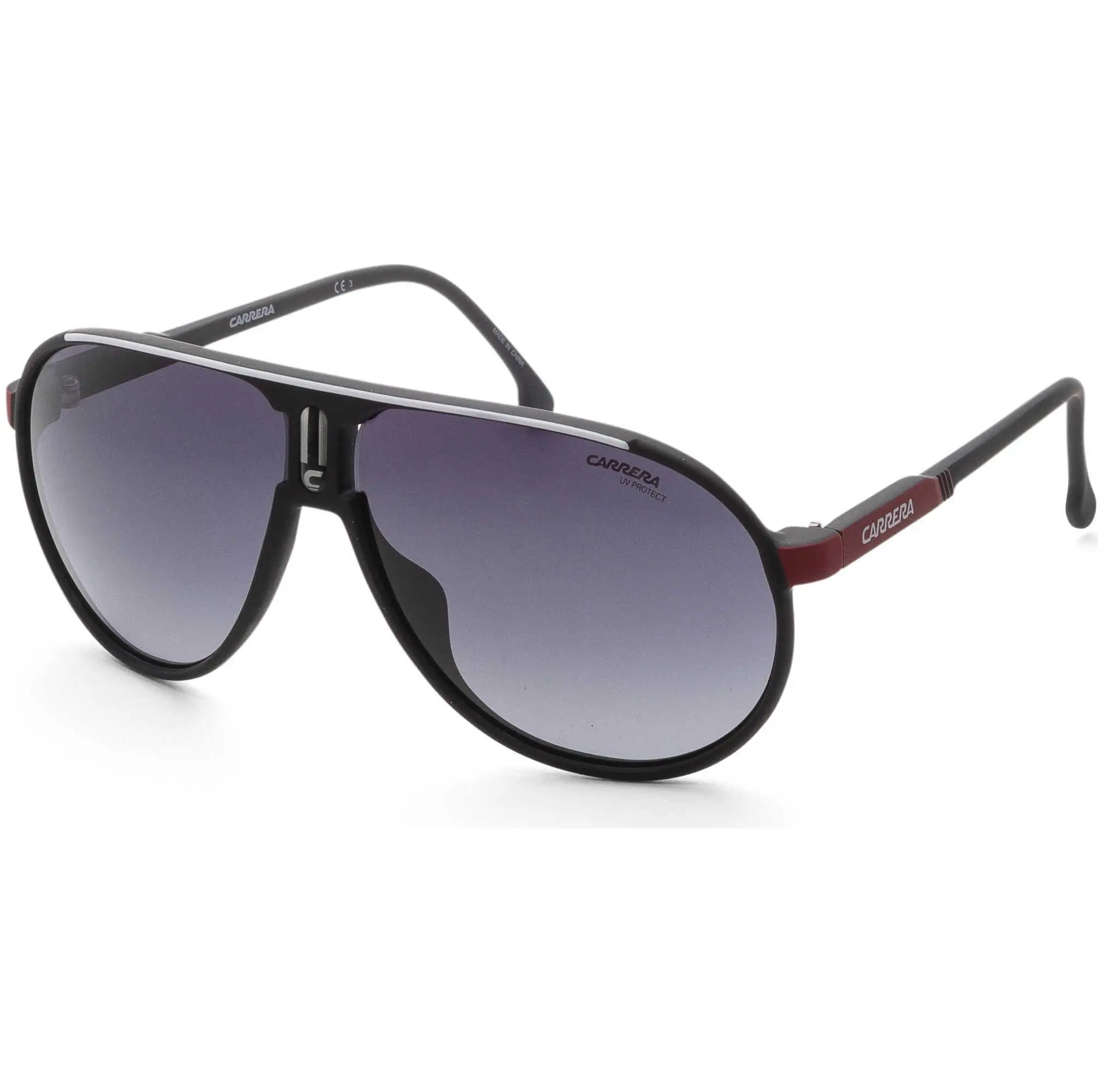 Carrera Champion Unisex 62 mm Sunglasses - Dimensions: 62 mm x 12 mm x 125 mm - Frame Color: Black Red - Frame Shape: Square - Frame Material: Plastic - Lens Color: Dark Grey Gradient - 100% UV Protection, Non-Polarized