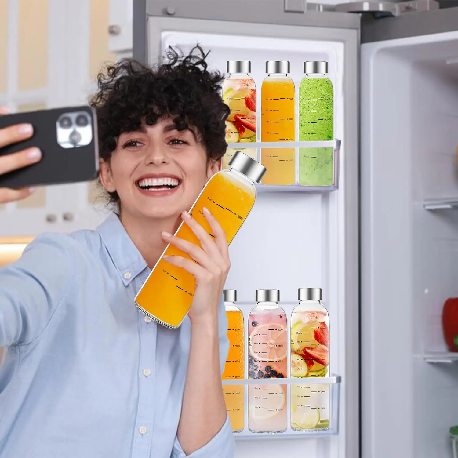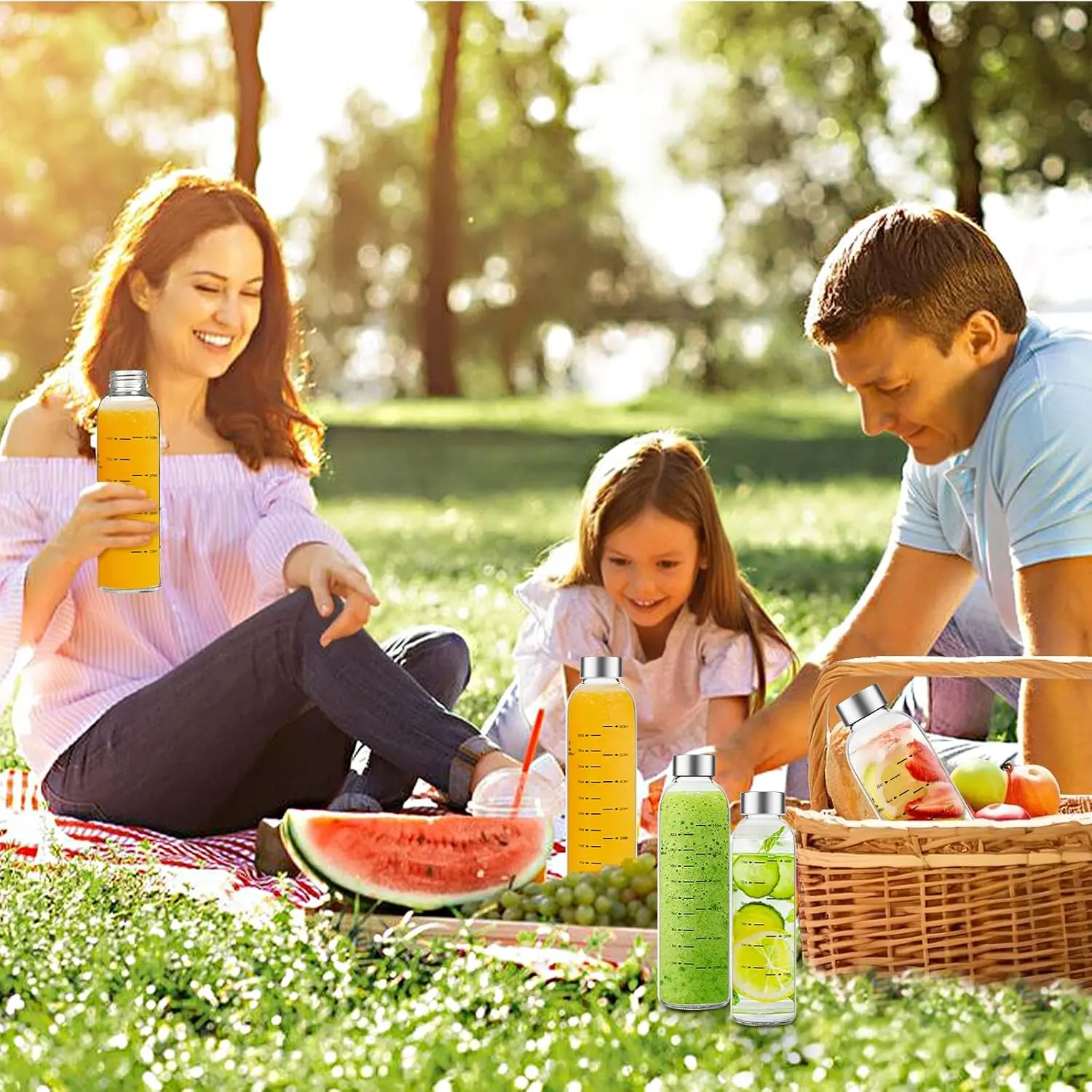 Crafted from high-quality, thick food-grade glass, these bottles are BPA, PVC, BPS, cadmium, and lead-free. They resist cracks and temperature changes, ideal for cold beverages like juices, iced tea, and cold brew coffee. The sturdy construction ensures long-lasting use, making them perfect for various drinks.