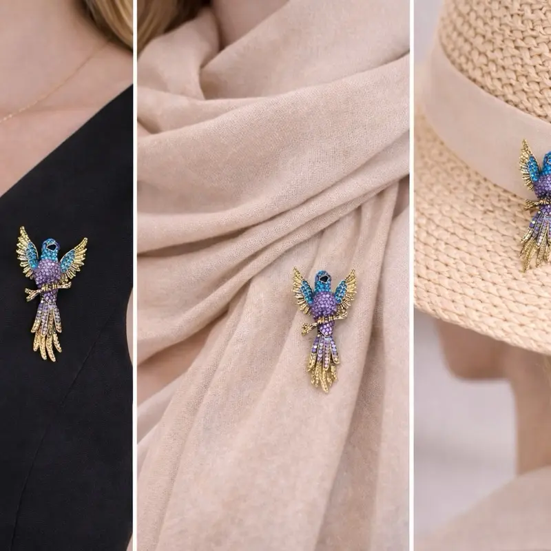 Add a bold and elegant touch to your outfit with this stunning hummingbird brooch.